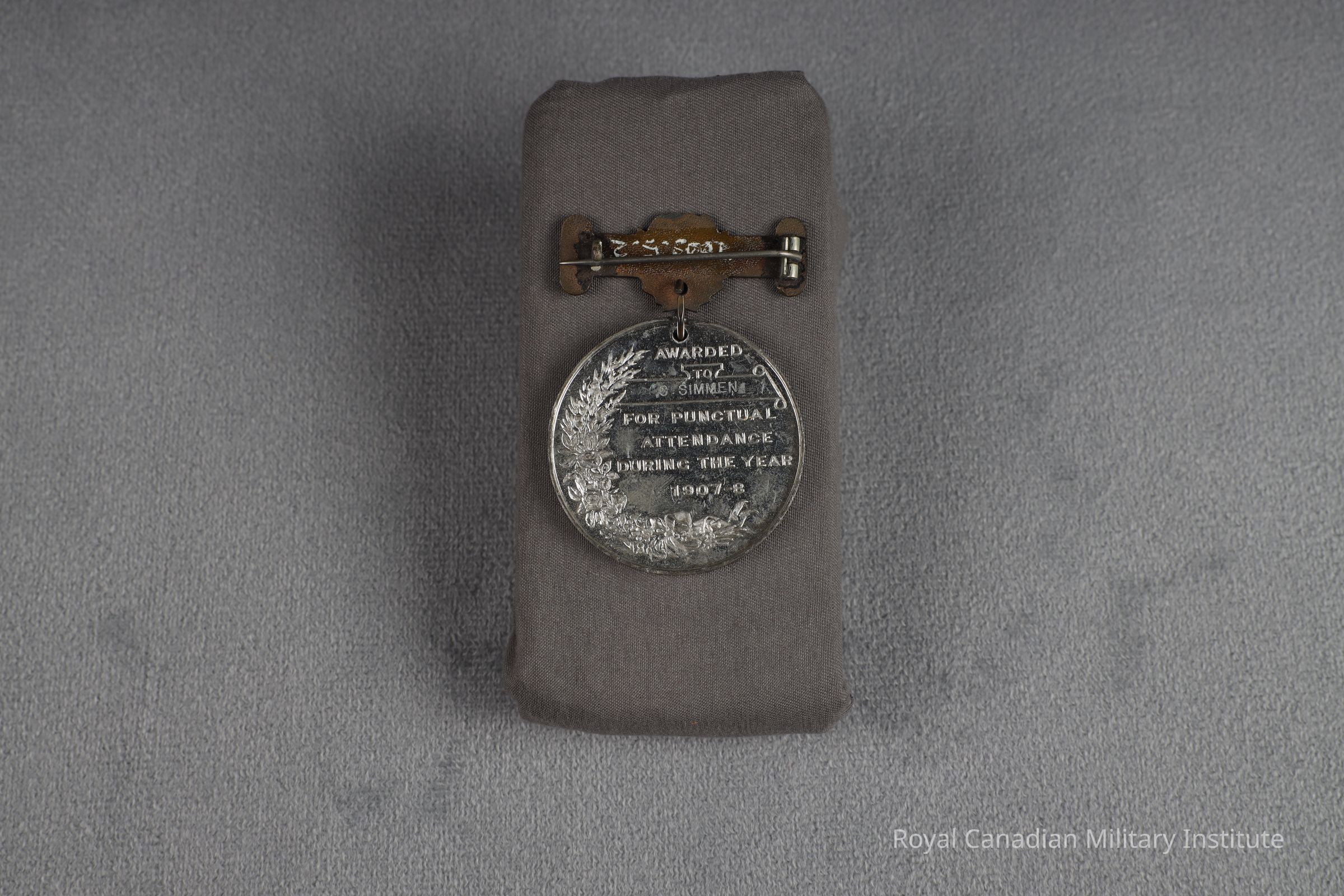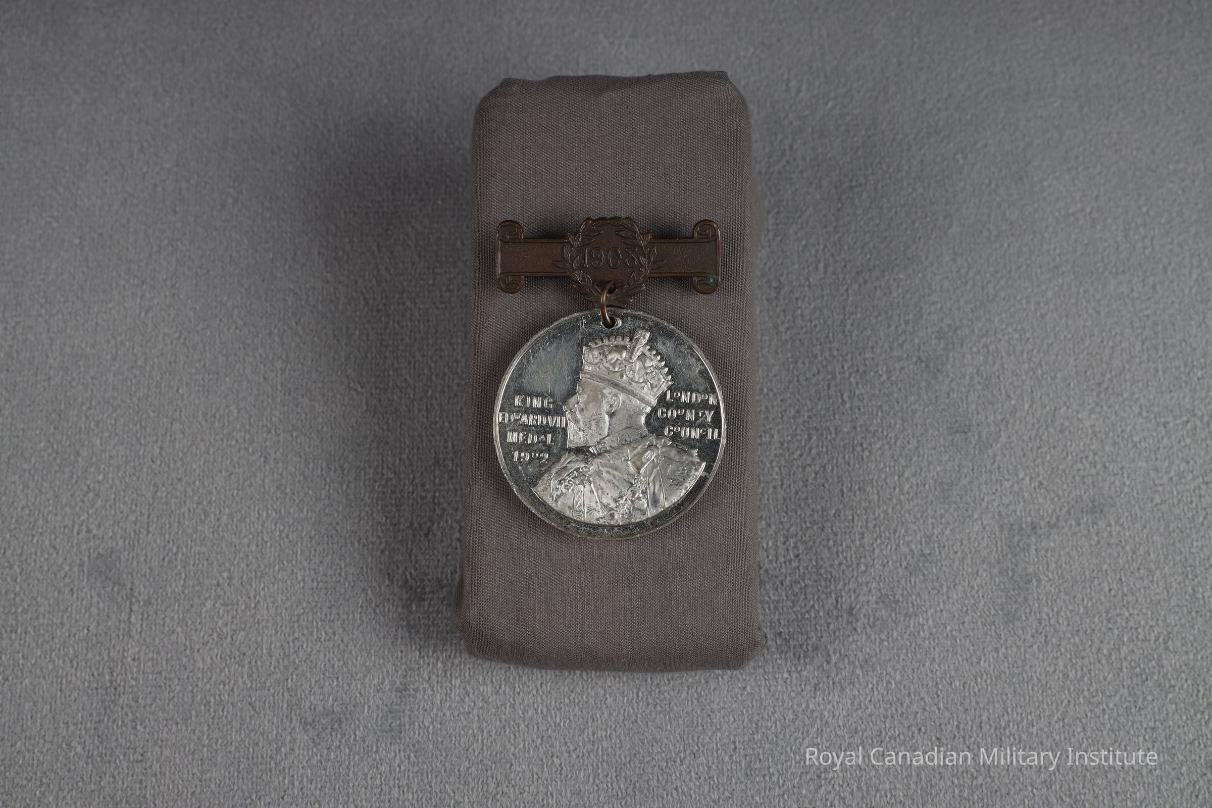 1907-1908 London County Council King Edward VII Medal For Punctual Attendance. Circular, white medal. Obverse crowned bust of King Edward VII with title "King Edward VII Medal 1902 London County Council" Reverse half-wreath of roses and title "Awarded To C. SIMMEN For Punctual Attendance During The Year 1907-8" Suspender of rectangular brass pin-backed bar with circular date "1908" in wreath. Bar is 1 x 3.8 cm.Made/Created