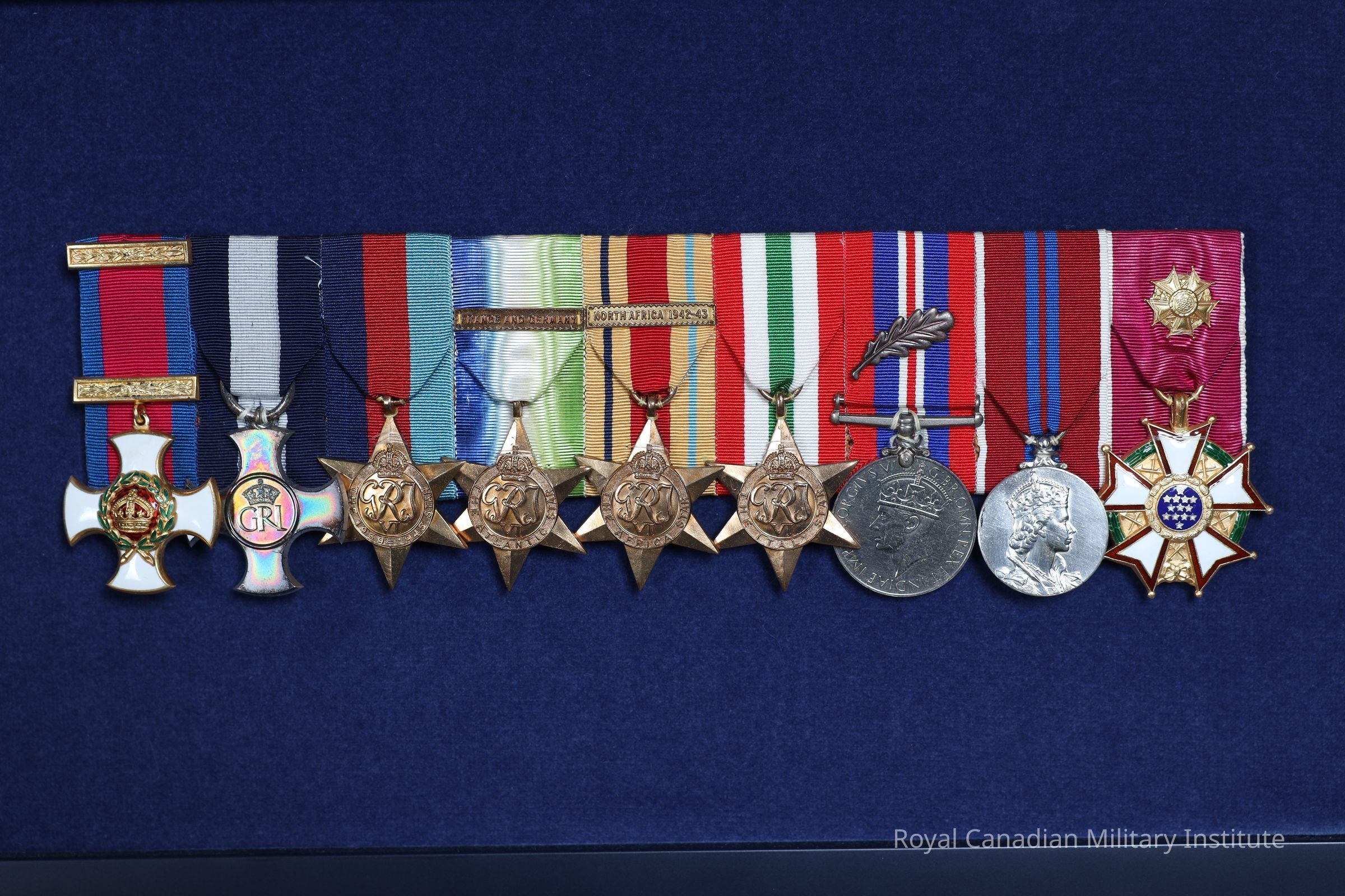 1943 Distinguished Service Cross, to Commander L.J.S. Ede. Silver cross pattee, convex, with circled Royal Crown/Cypher in centre. Reverse is plain, with hallmarks on bottom arm, and date "1943" inscribed. Suspender of solid ring holding ribbon, blue-white-blue, 3.2 x 7 cms.
