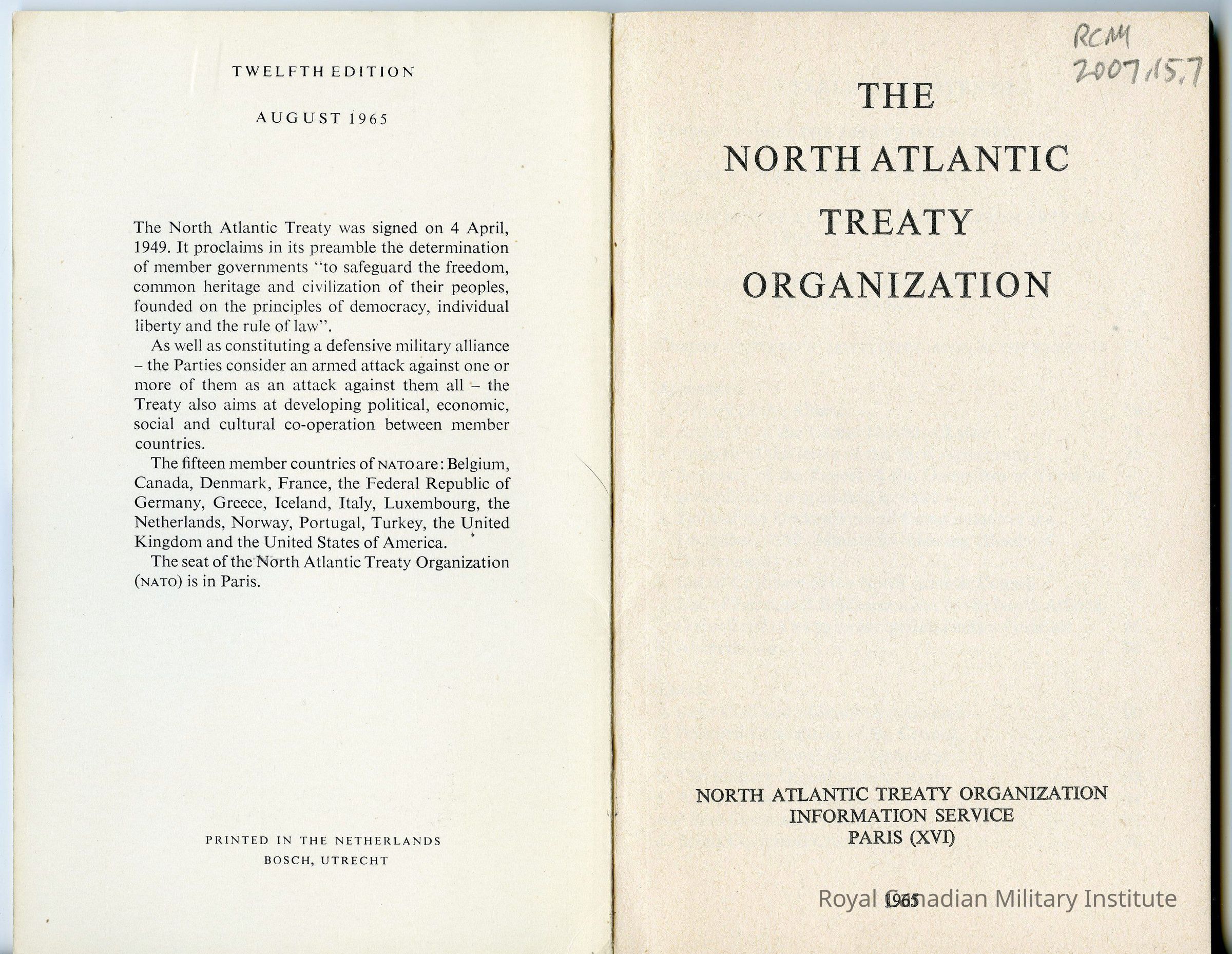 1965 North Atlantic Treaty Organization handbook.Entry/Object ID