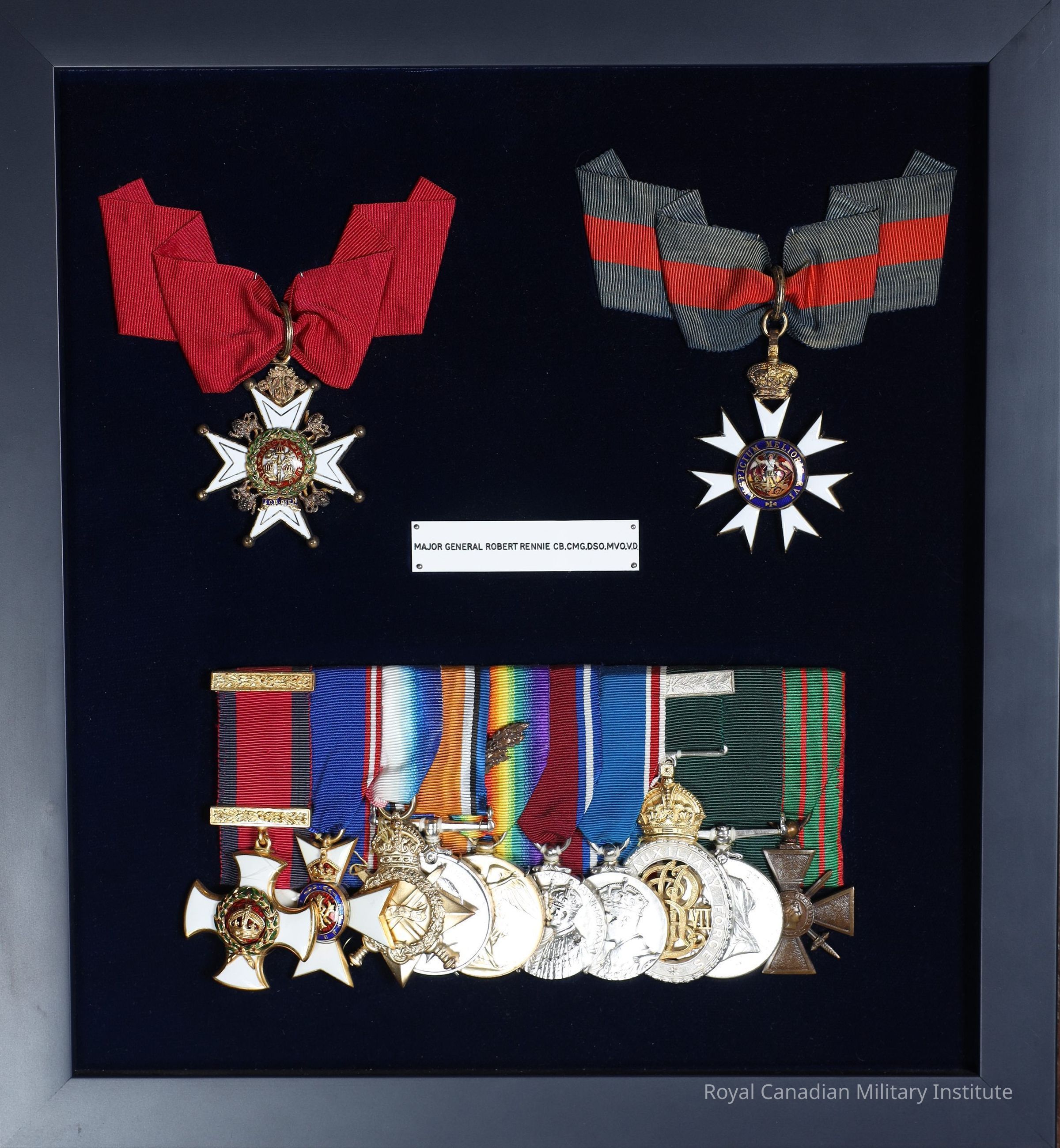 No accession number on medal. Stamped into rim: "BRIG. GEN. R. RENNIE." Court-mounted in group of ten Orders, Decorations, Medals. Framed.Dimensions
