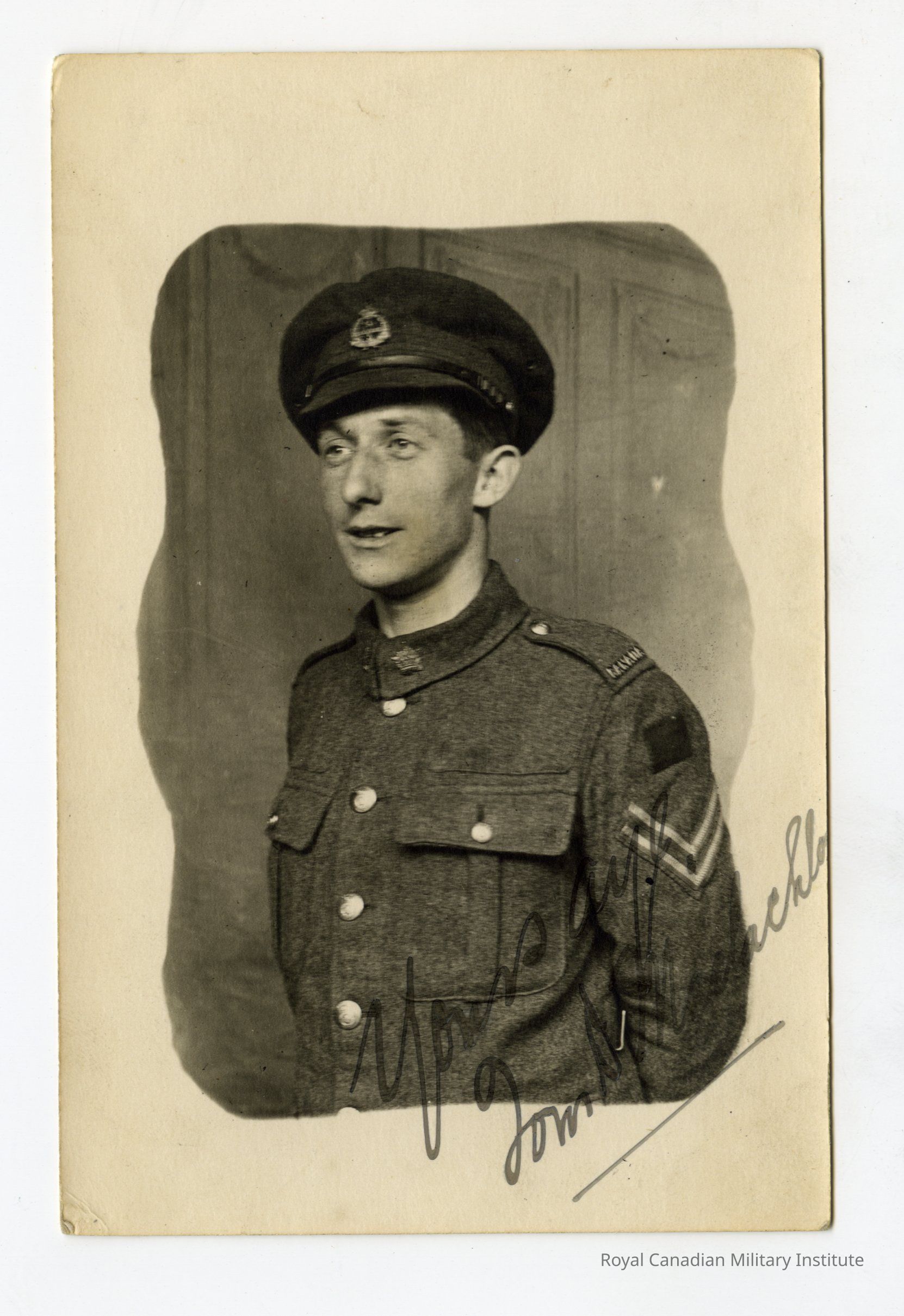 Postcard "A RPPC of a 5th Battalion Corporal identified as MacLachlan or MacLough."Entry/Object ID