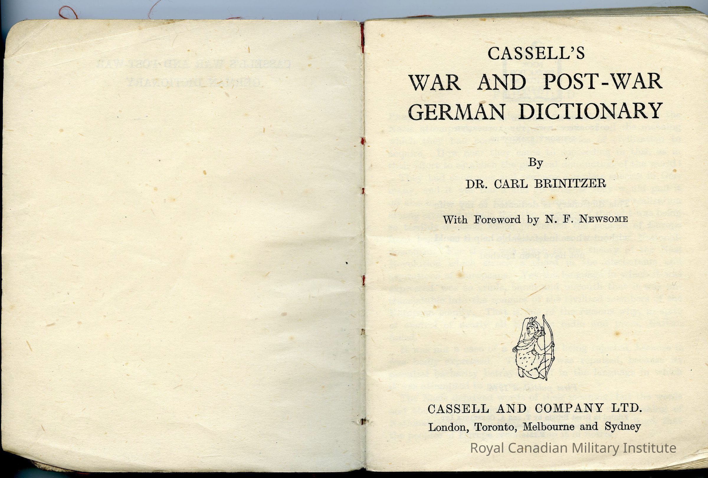 Title on front cover "Cassell's War and Post-War German Dictionary Dr. Carl Brinitzer Five Shillings Net"Dimensions