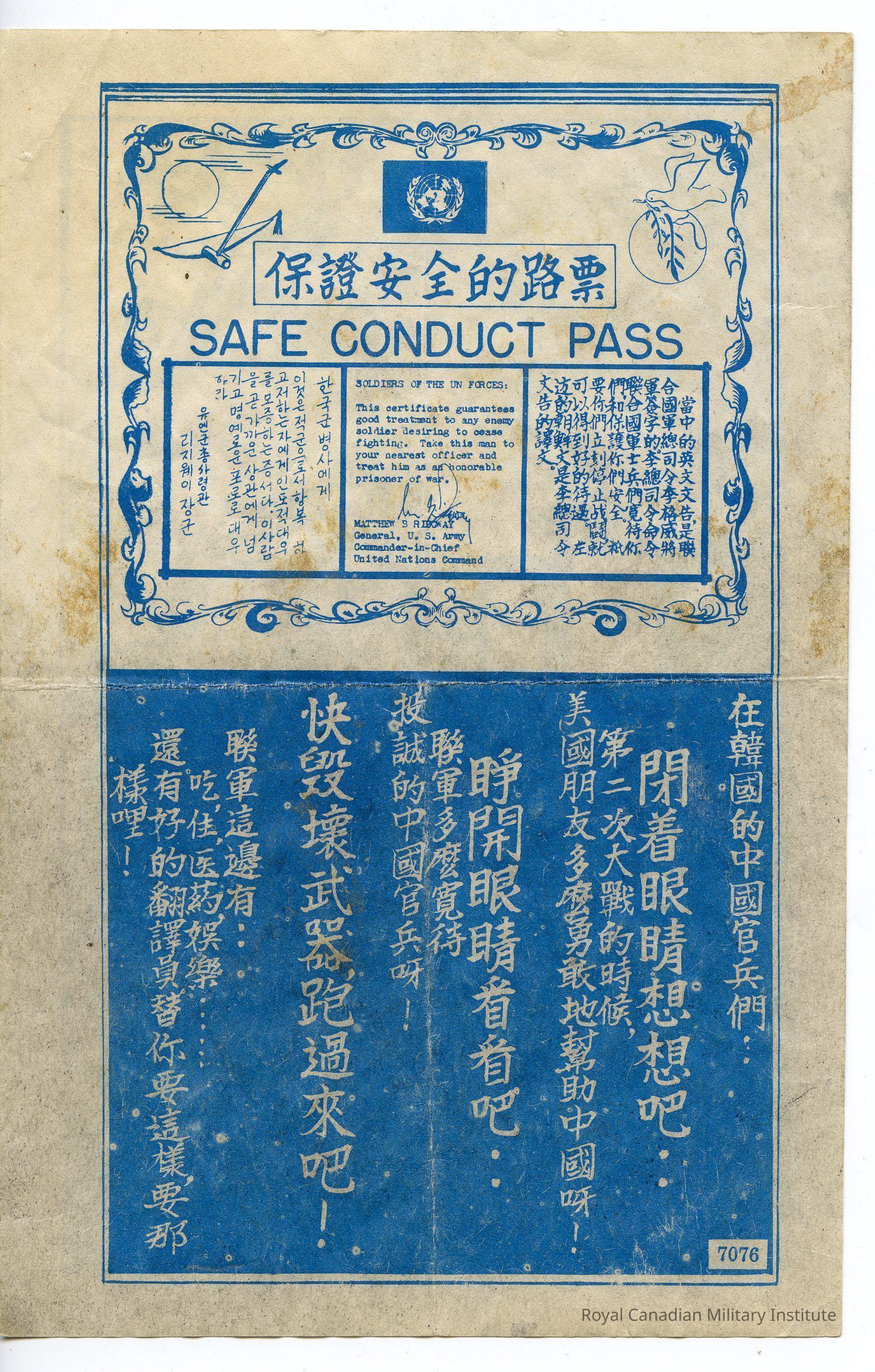 1950-1953 United Nations safe conduct pass.Entry/Object ID