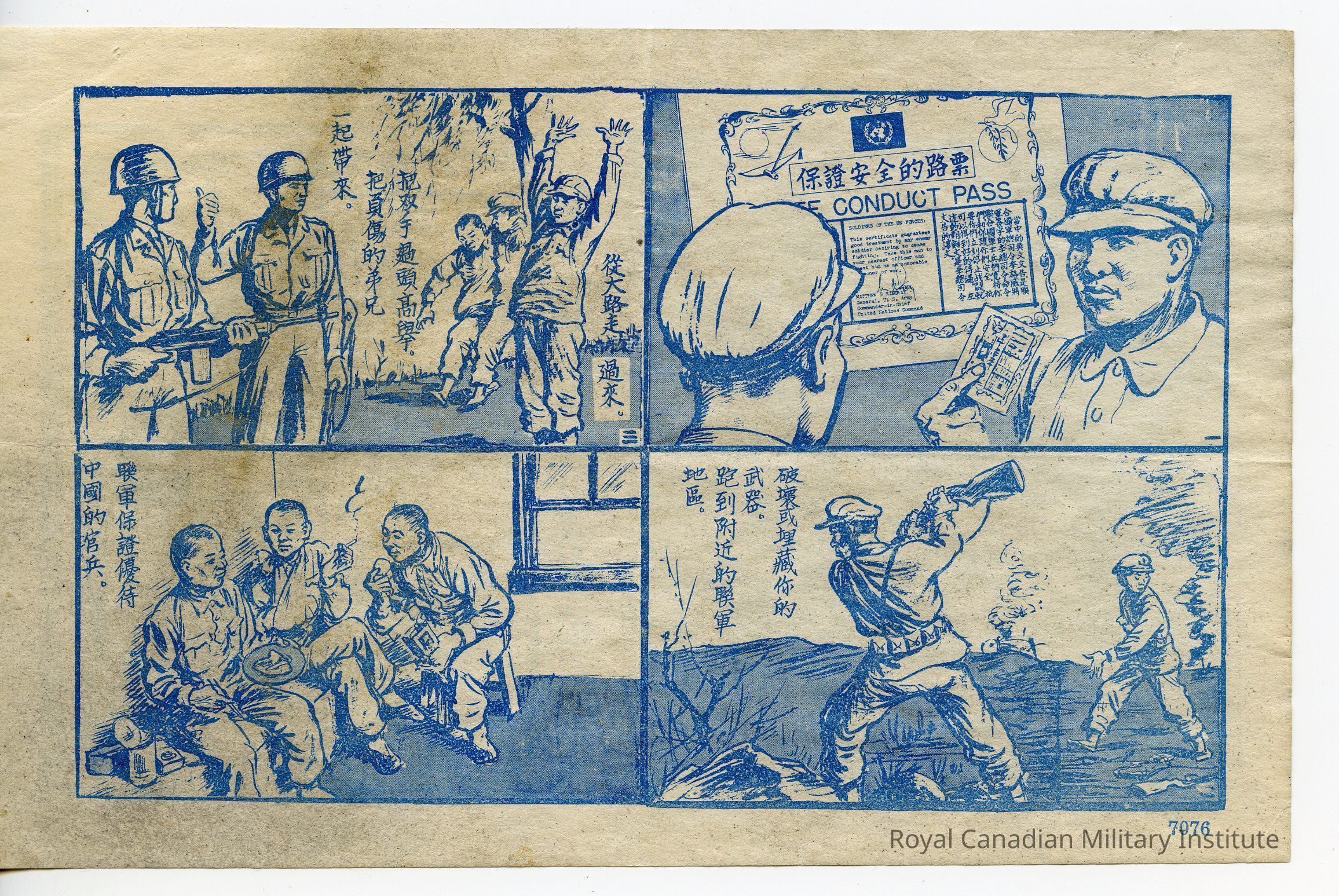 On the reverse is a comic that appears to demonstrate how enemy soldiers can use the pass to ensure their safe conduct.Made/Created