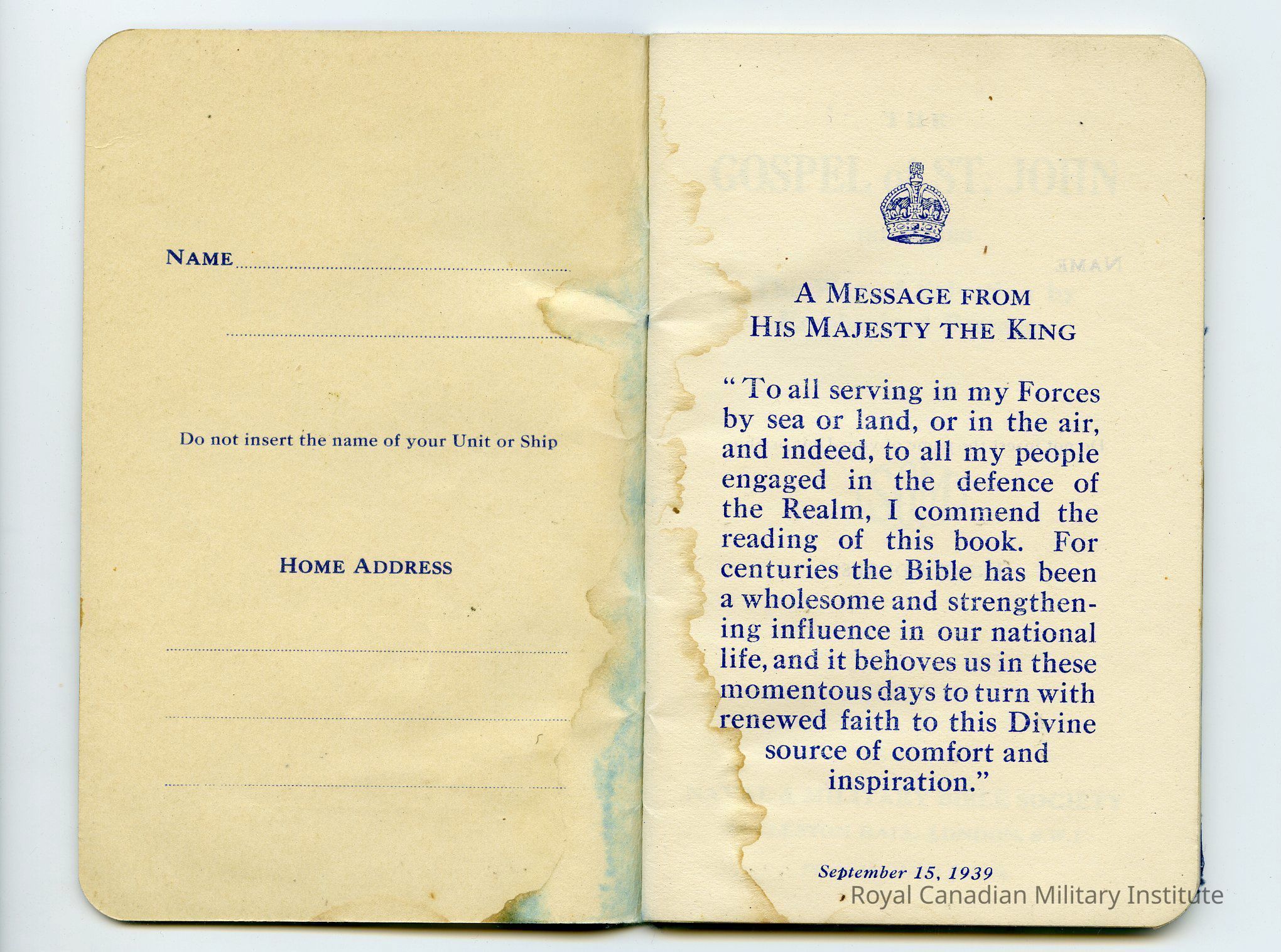 1939 British Naval & Military Bible Society Bible.Entry/Object ID