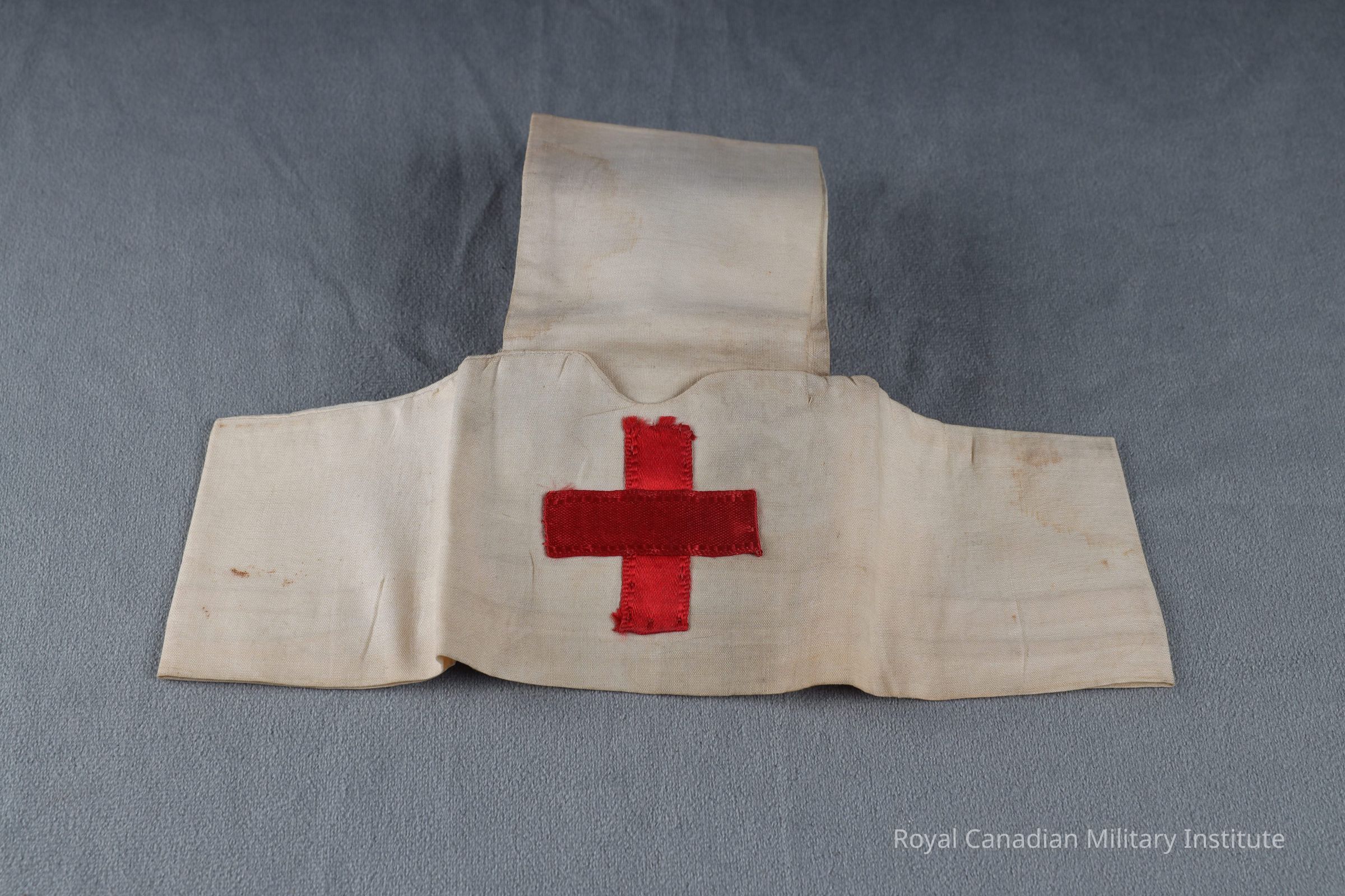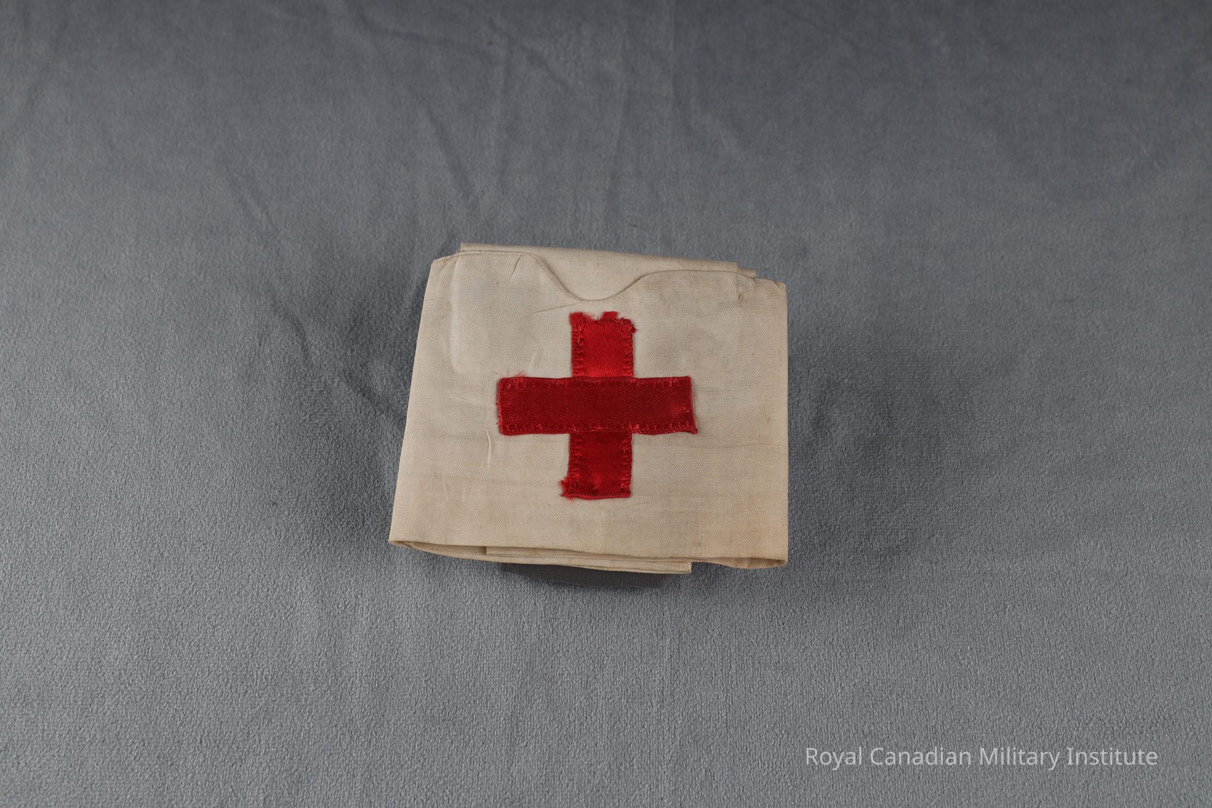 During the Great War, Canadian and British combat medics, usually stretcher-bearers, wore a medical corps armband in combat. It signified their non-combatant status to enemy forces, although many were still killed or wounded while they attempted to reach and aid the injured.