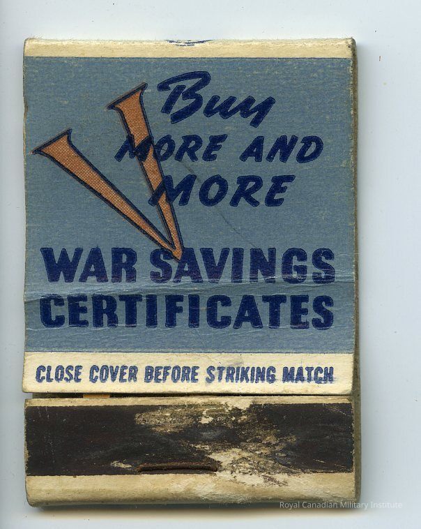 1943-1945 Canadian civilian War Savings Certificates matchbook cover.Entry/Object ID