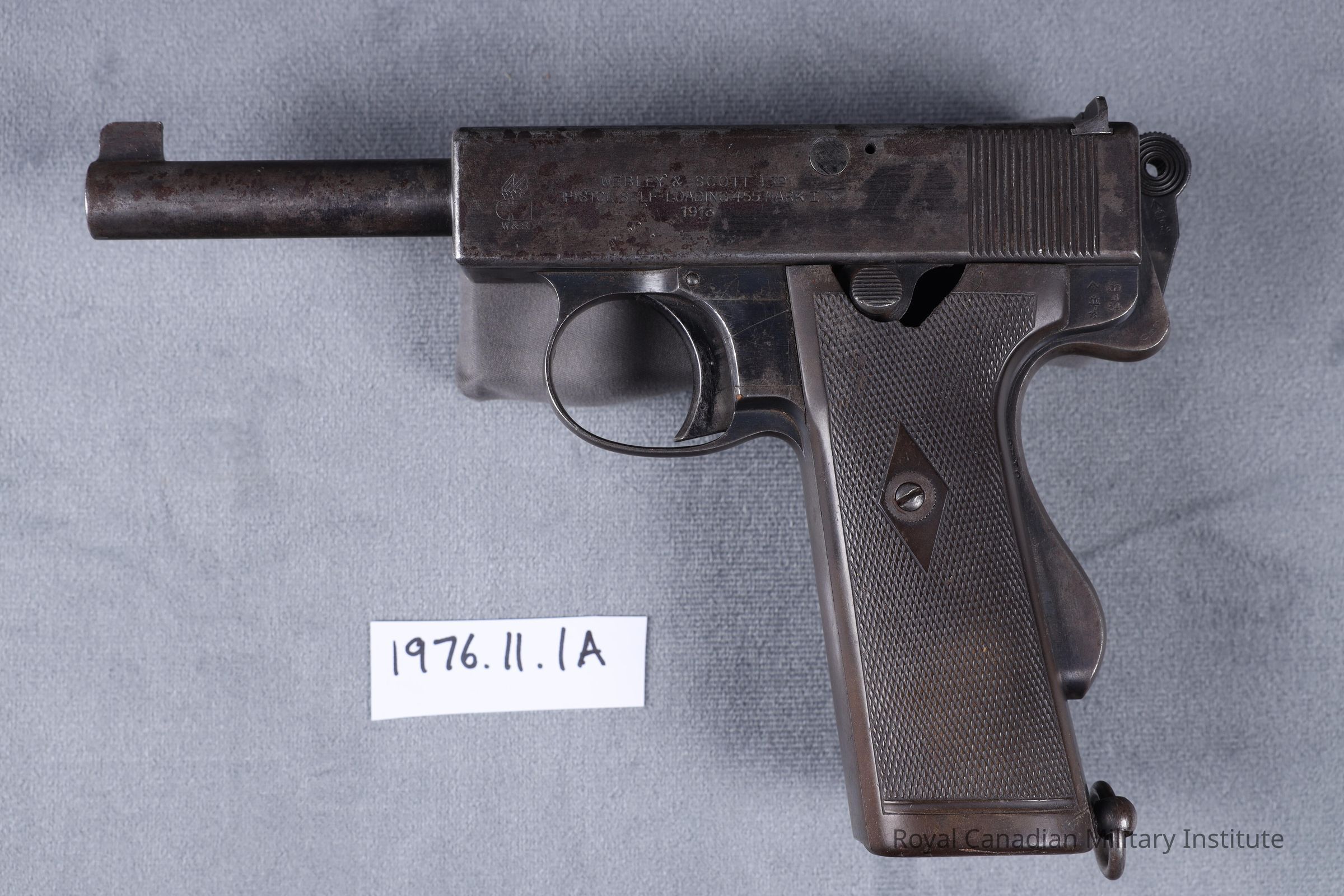 Stamped left receiver: "Webley & Scott Ltd. Pistol, Self-Loading .455 Mark I N 1913"Dimensions
