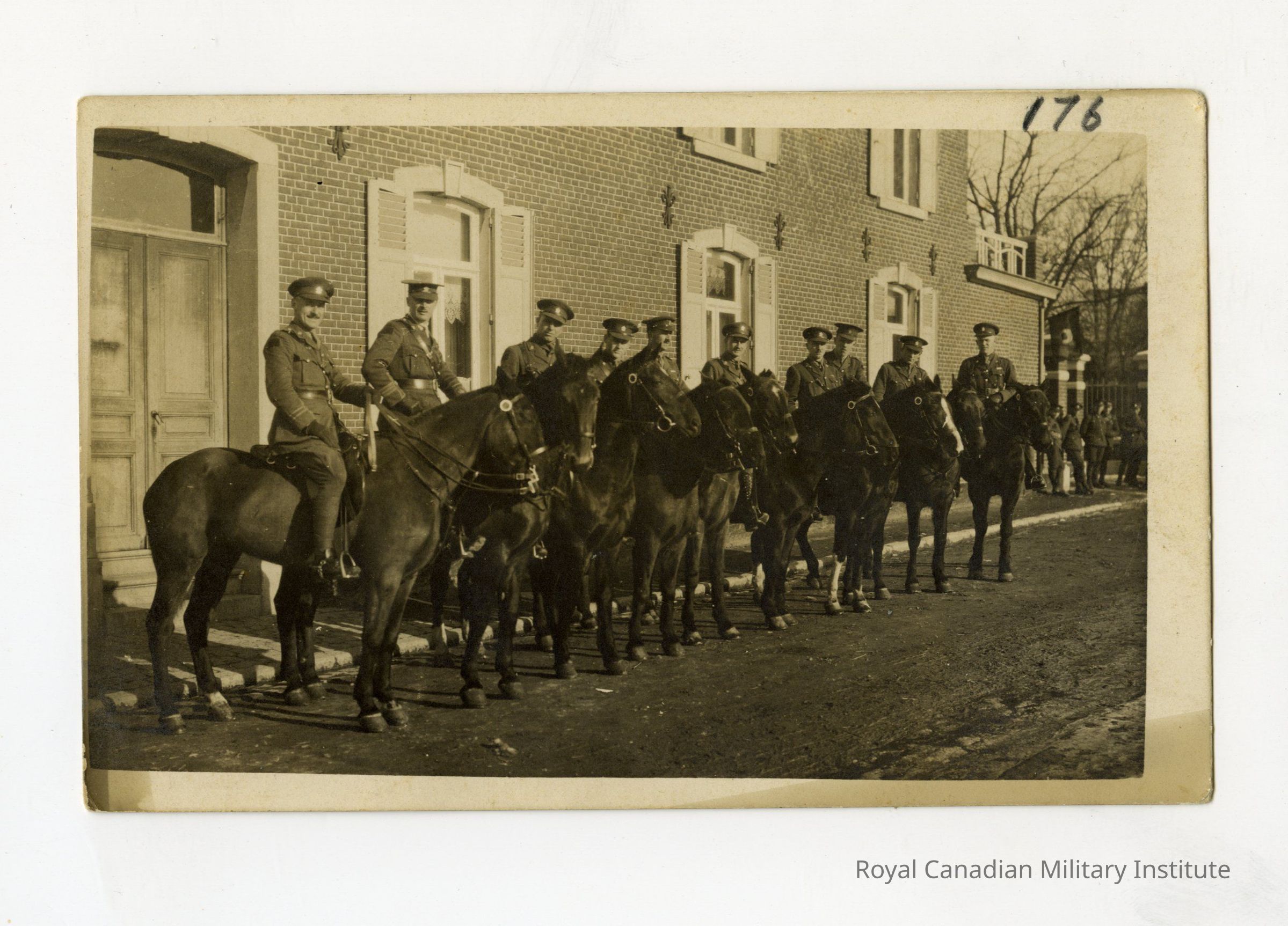 Postcard "An unidentified RPPC of ten 4th Battalion officers on horseback. France 1917."Entry/Object ID