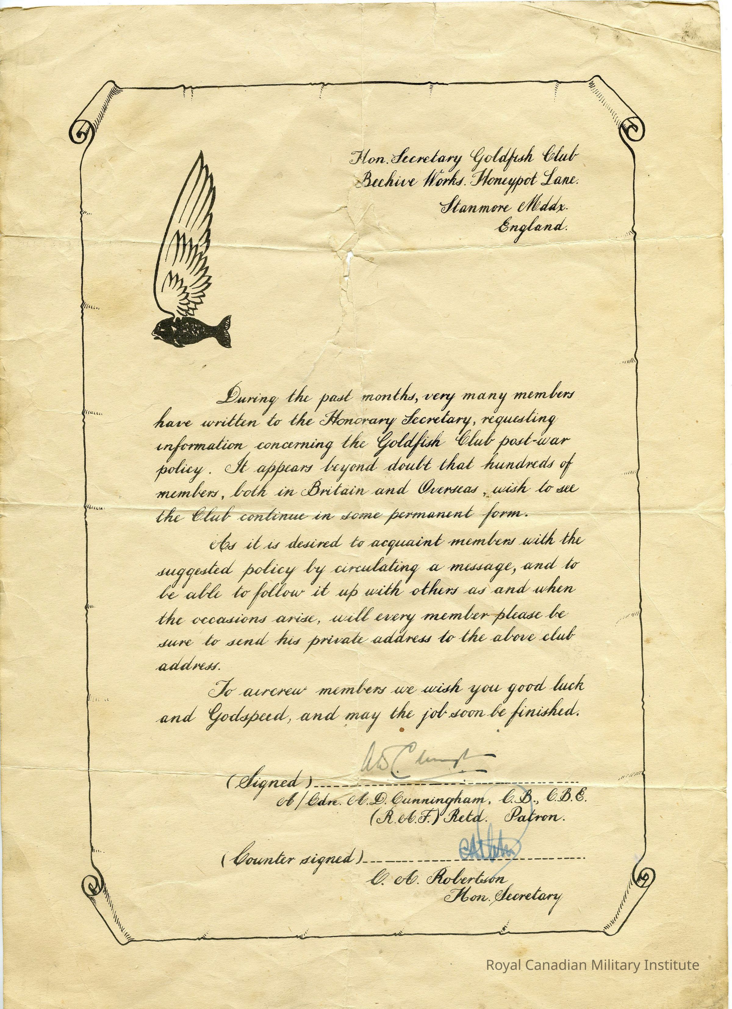 1960's Royal Air Force Association "Goldfish Club" letter.