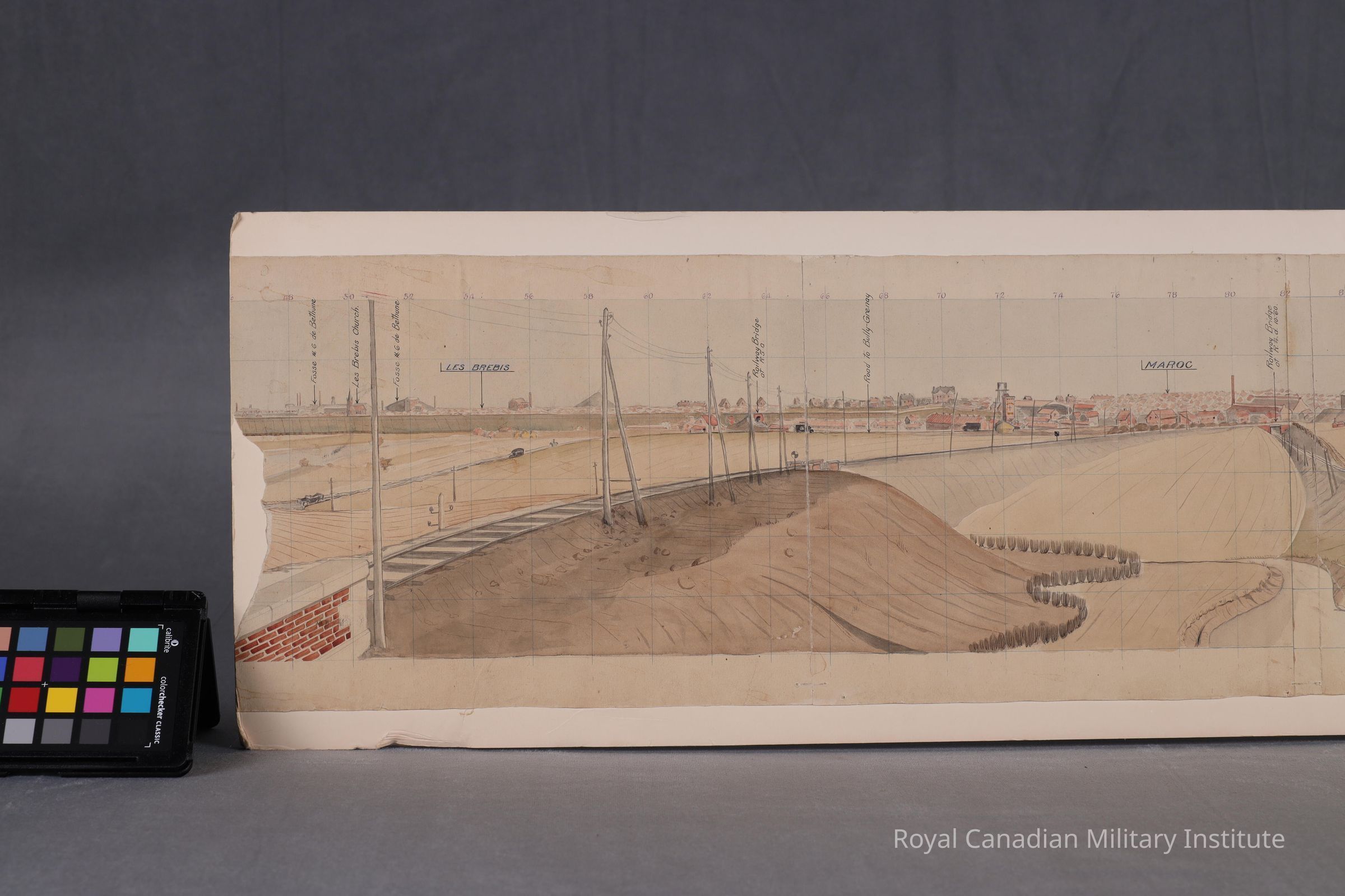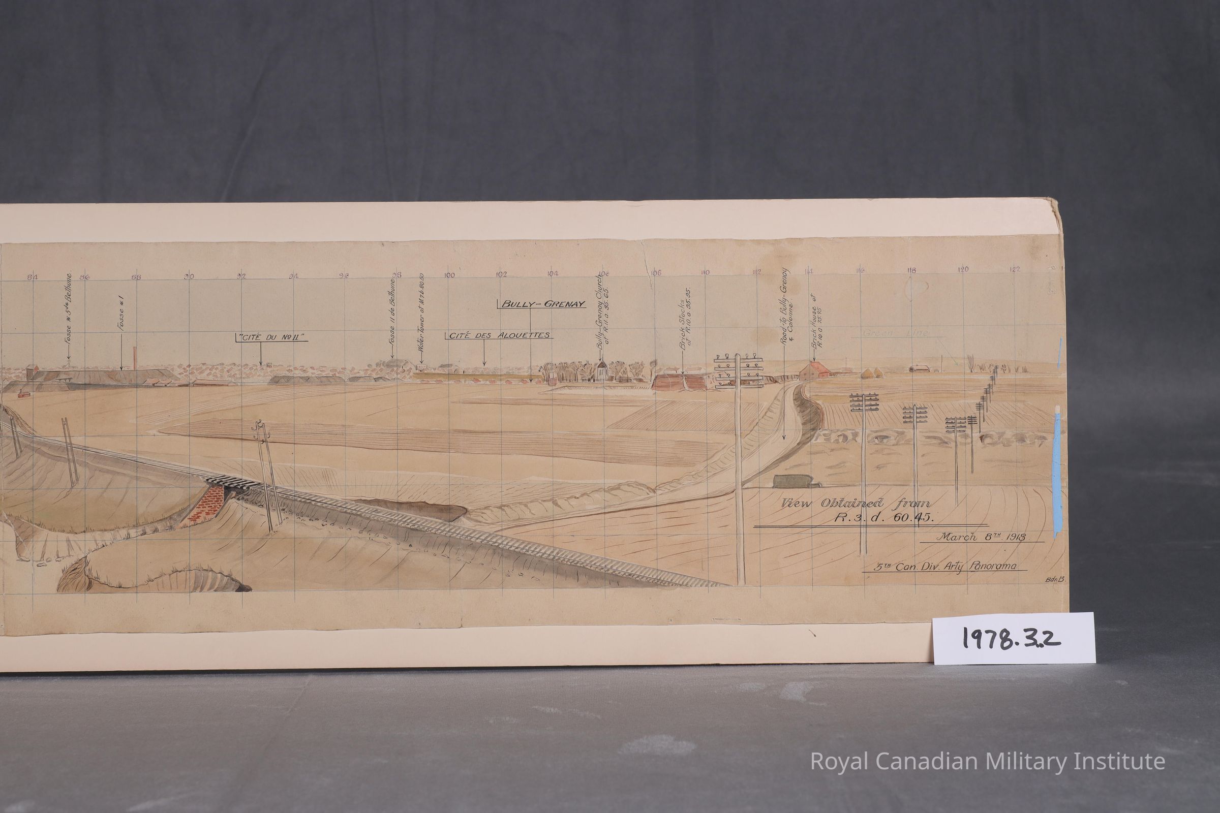 1918 Canadian Field Artillery panorama sketch "Fosse No. 6 de Bethune to Brick House."Entry/Object ID