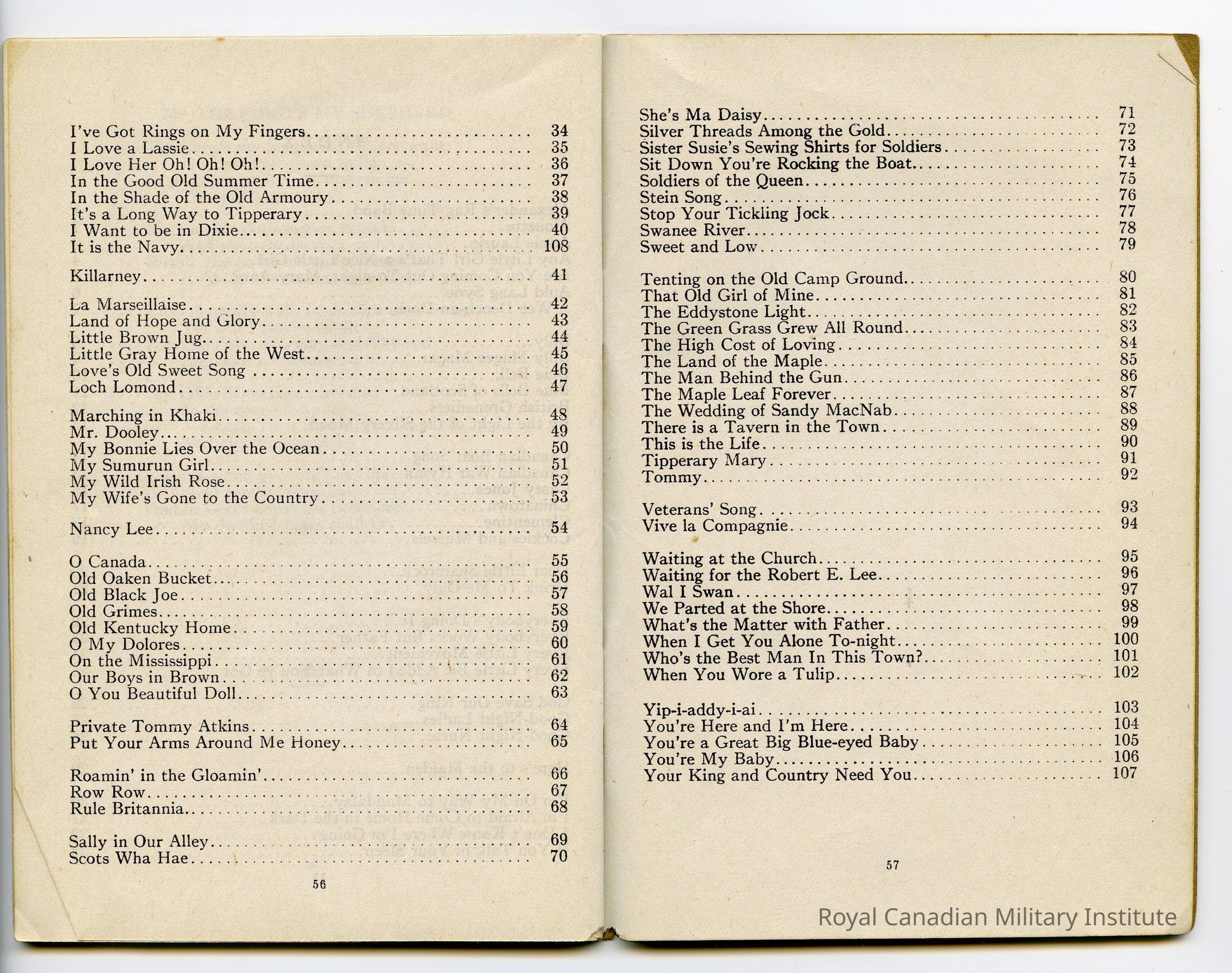 1915 booklet "Regimental Songs Canadian Expeditionary Force 1914-1915."Entry/Object ID