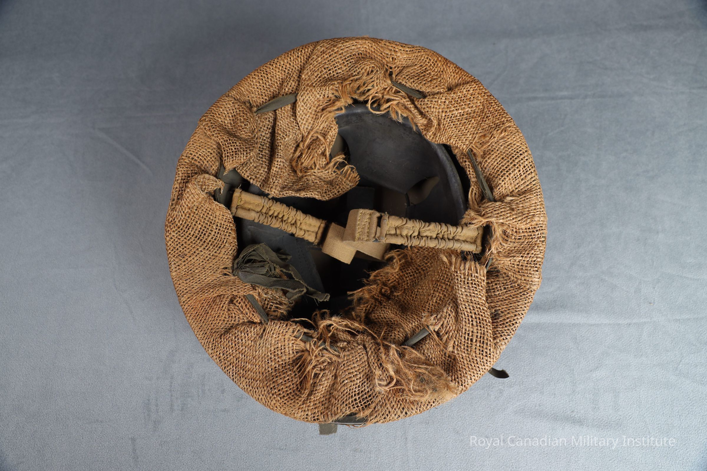 1942 Canadian Army Mark II steel helmet w/hessian/scrim coverEntry/Object ID