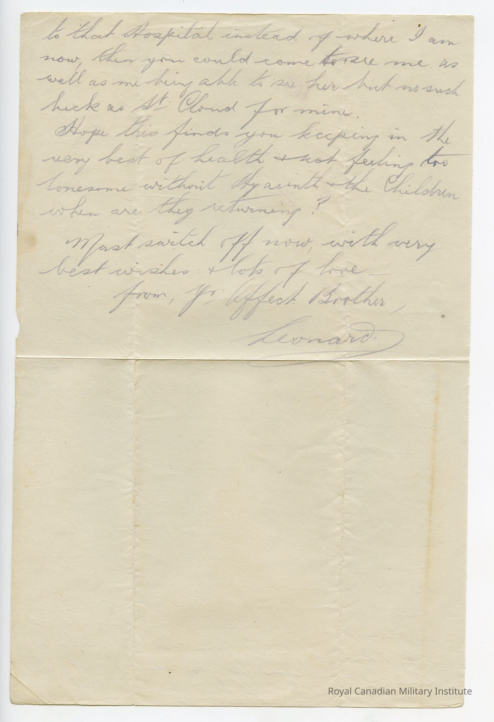 Letter/Envelope “Sgt. Leonard E. Stamp, 31st Batt’n 07/09/16” K.I.A. Passchendaele ) 06/11/17