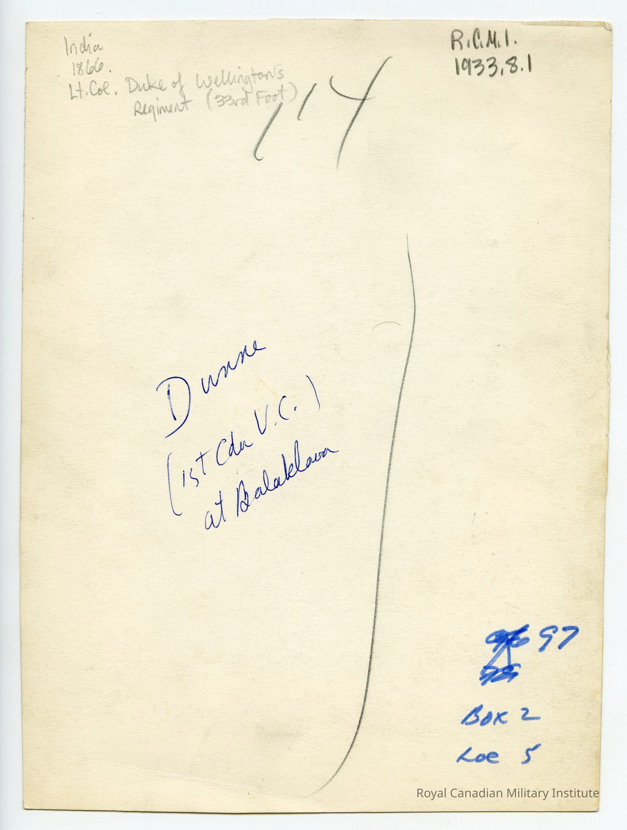 Lieutenant Alexander Roberts Dunn the First Canadian Officer Victoria Cross: an 11th Hussars Officer at October 25th 1854 Charge of Light Brigade, he saved the lives of two of his men by attacking Russian gunners with his sword.Inscription/Signature/Marks