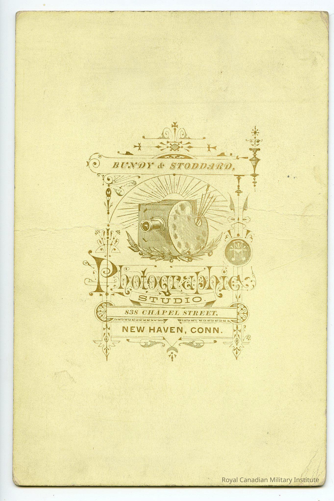 He wears an American Army Infantry sword and curiously holds a Queens' Own Rifles Busby in his lap.Context