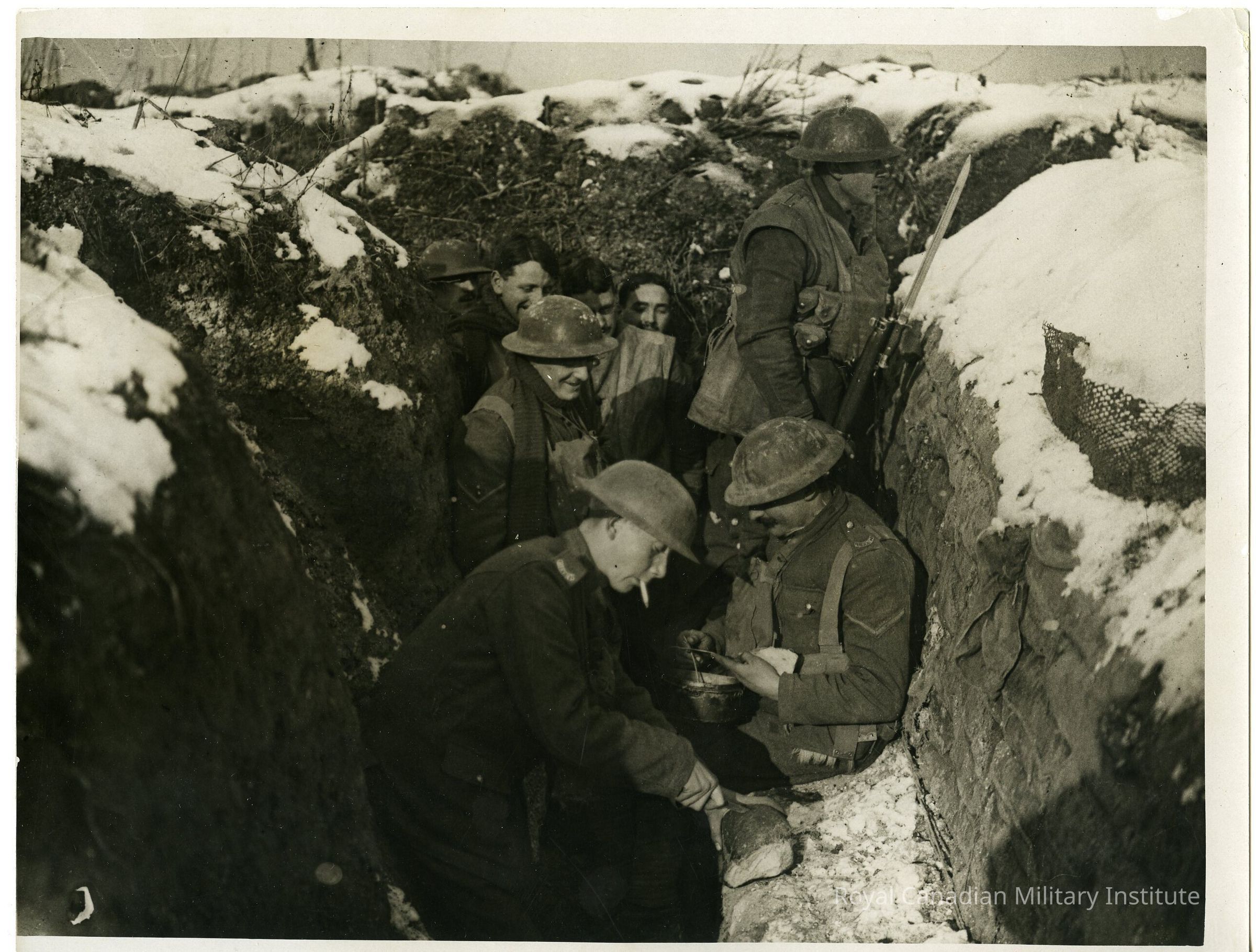 Photograph "British Army Tommies Eating in the Trenches."Entry/Object ID