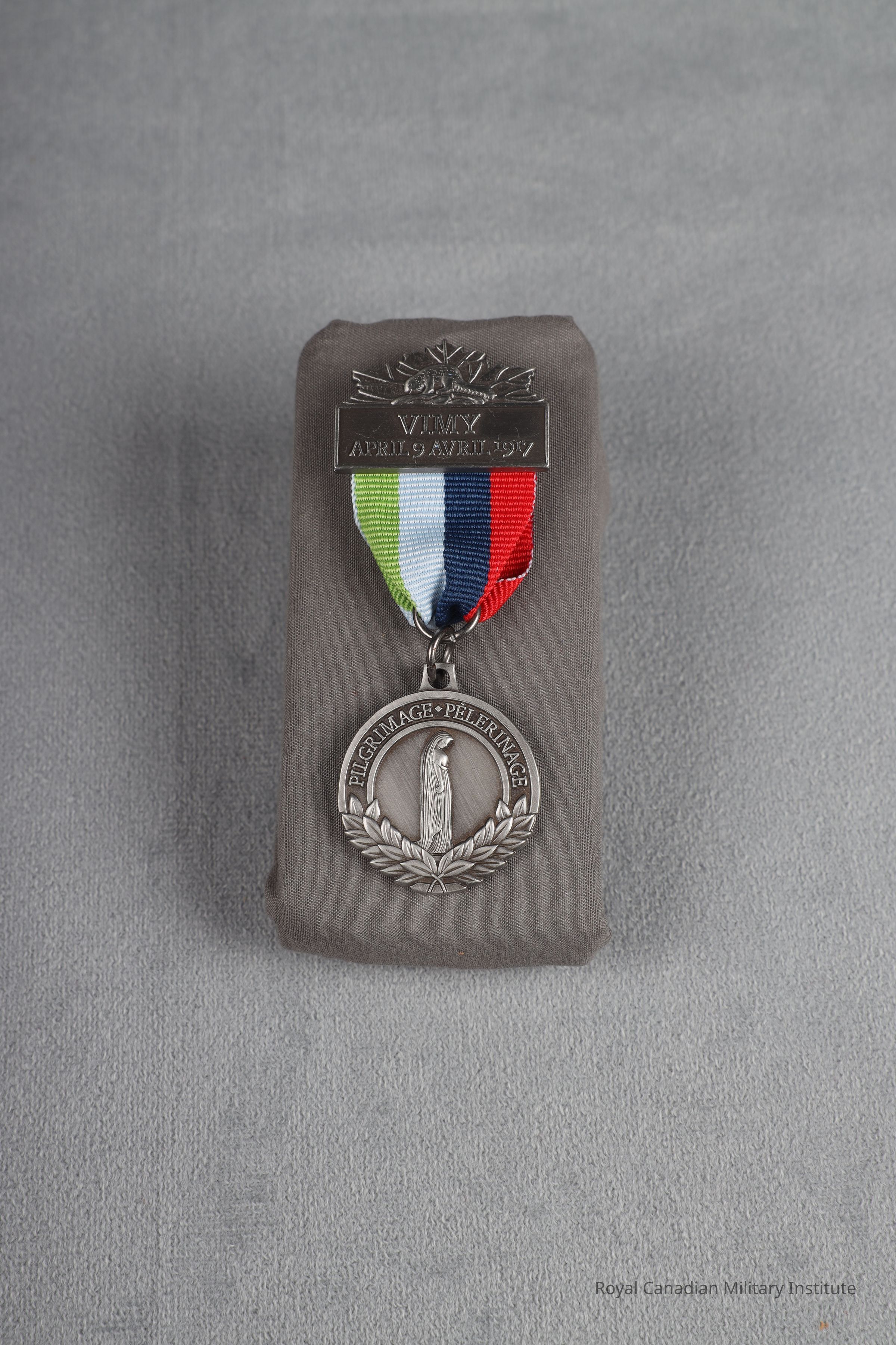 The Vimy Pilgrimage Medal was designed in 2007 to honor the 90th anniversary of the Battle of Vimy Ridge. The Vimy Foundation provided Canadian students with the medal as it recreated the moment Canadian Great War veterans were given a Vimy medal in 1936.