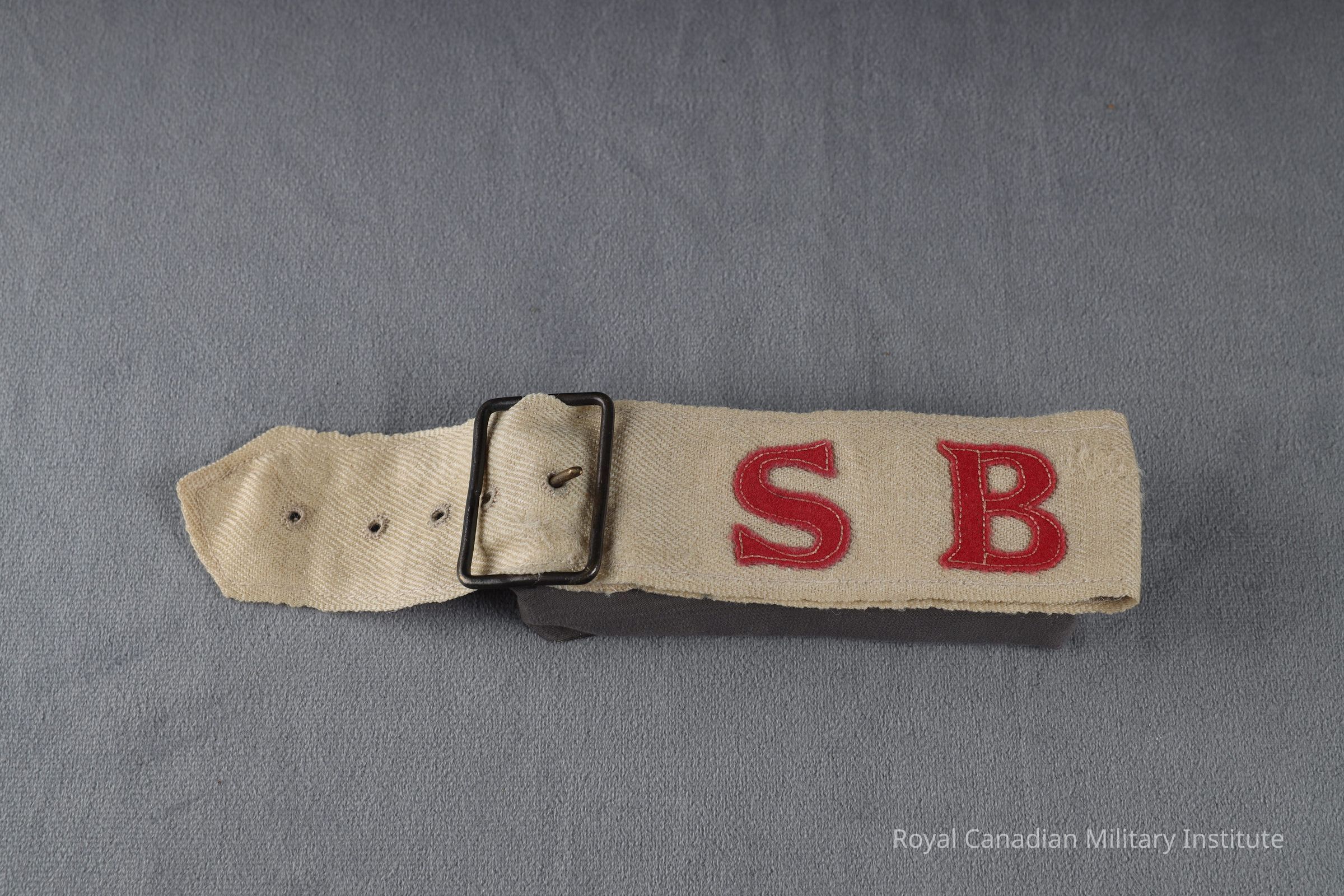 For context, see 1914-1918 BEF/CEF medical corps armband/headband. Also, there were two distinct types of medical armlets during the war. At the regimental level, stretcher-bearers wore an armlet with "SB." The other armband depicted "S" and "B" on either side of the Red Cross.