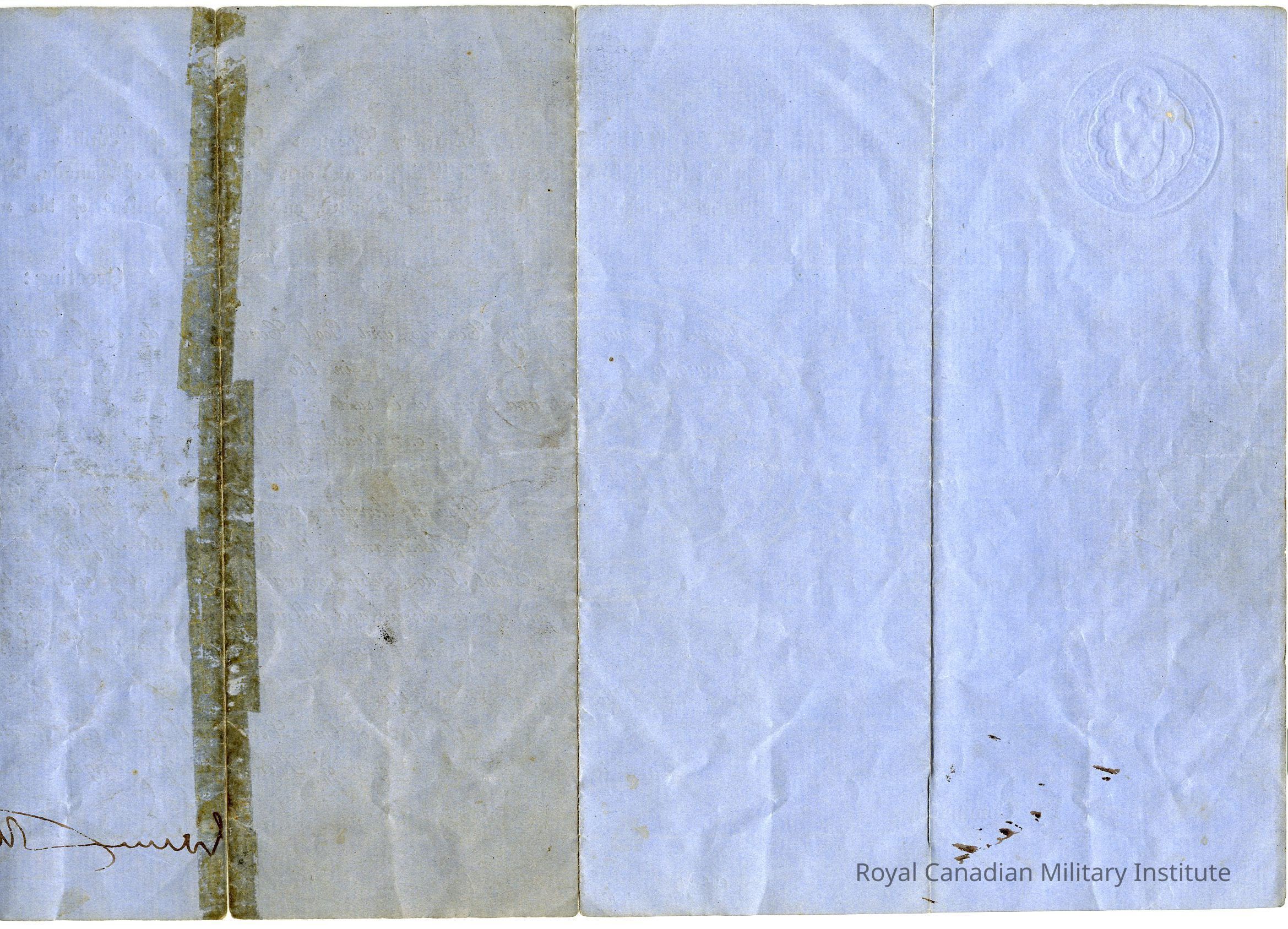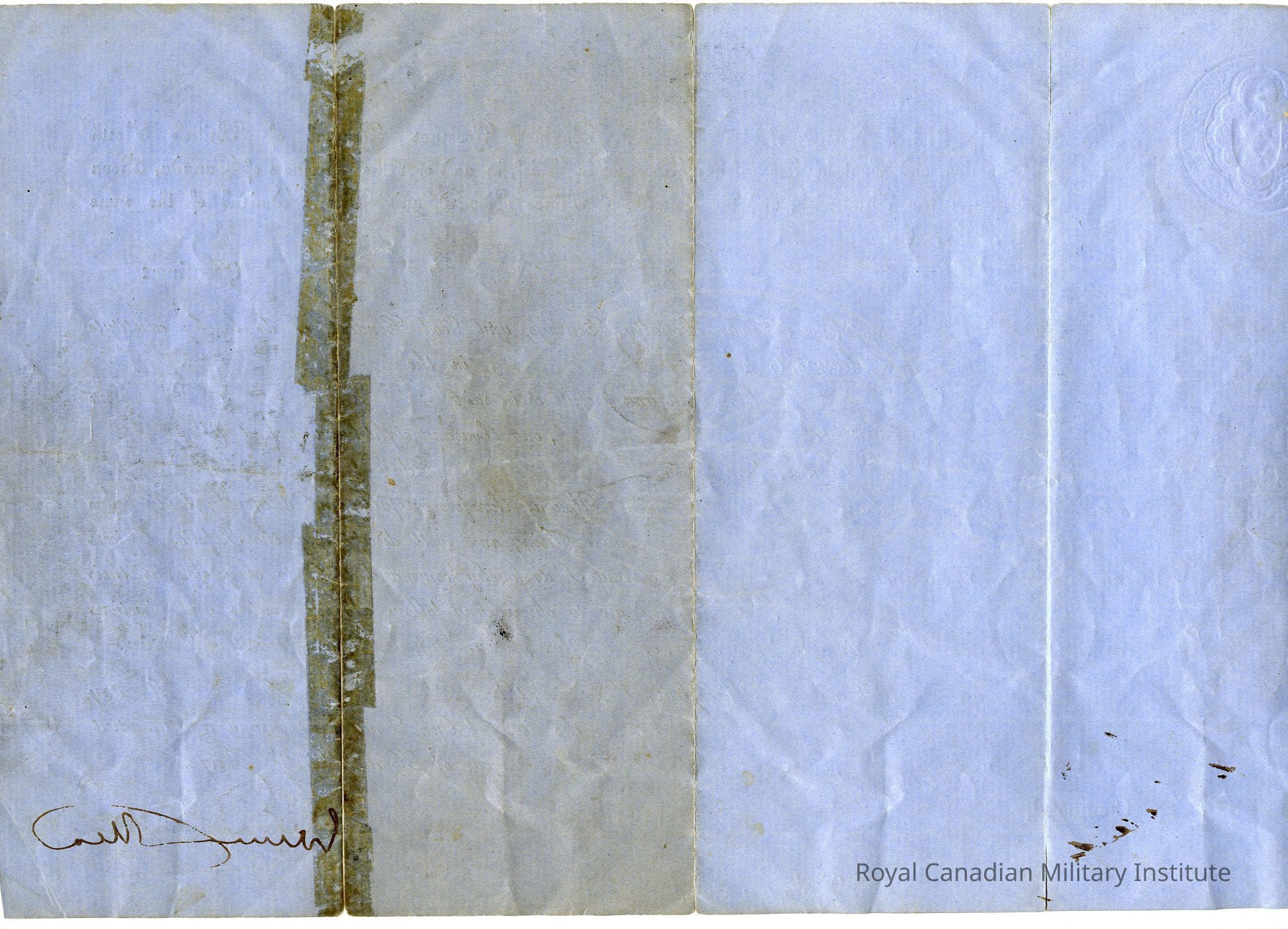 1857 Toronto Volunteer Militia Foot Artillery Company Officer's Commission ScrollEntry/Object ID