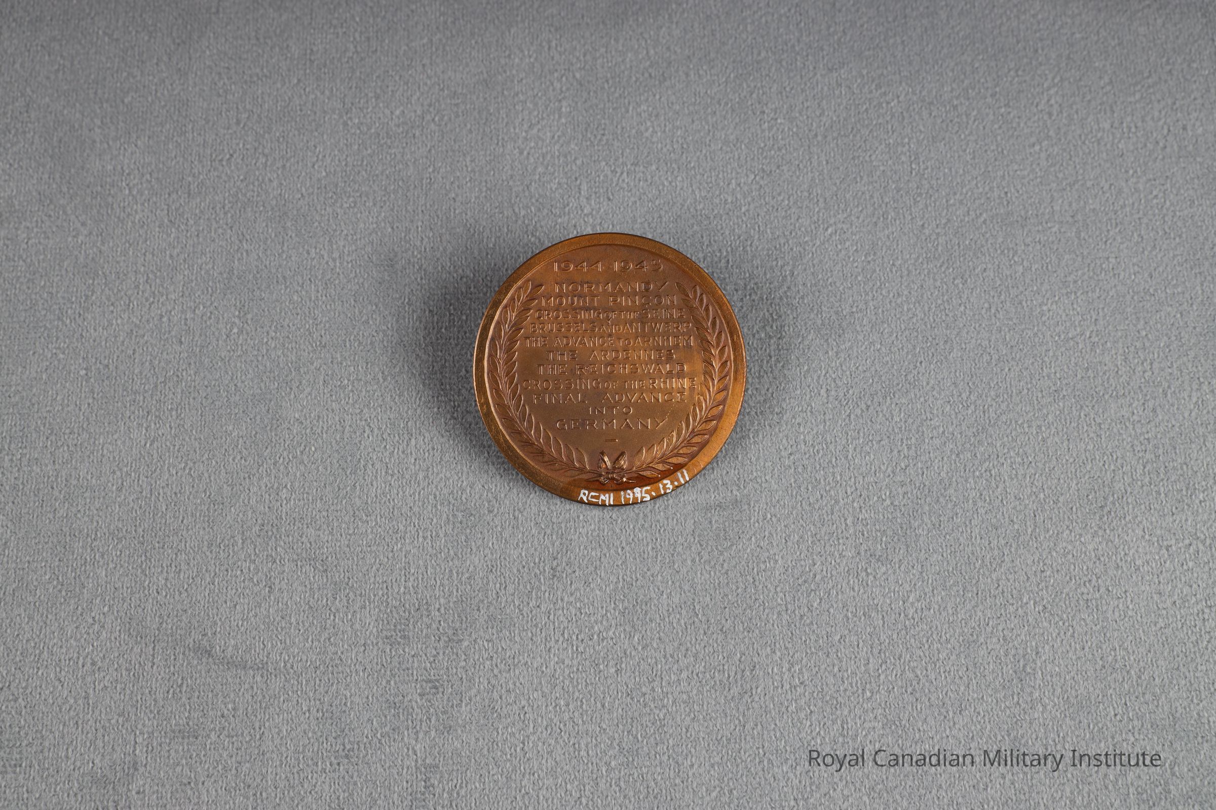 around text: "1944-1945 Normandy Mount Pincon crossing of the Seine, Brussels and Antwerp, The advance at Arnhem, the Ardennes, the Reichswald, Crossing of the Rhine, Final
