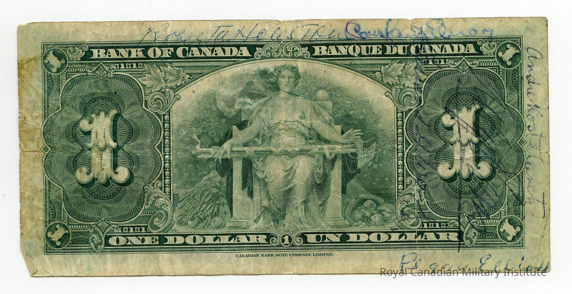 1943-1944 Canadian civilian one-dollar banknote (signed)Entry/Object ID