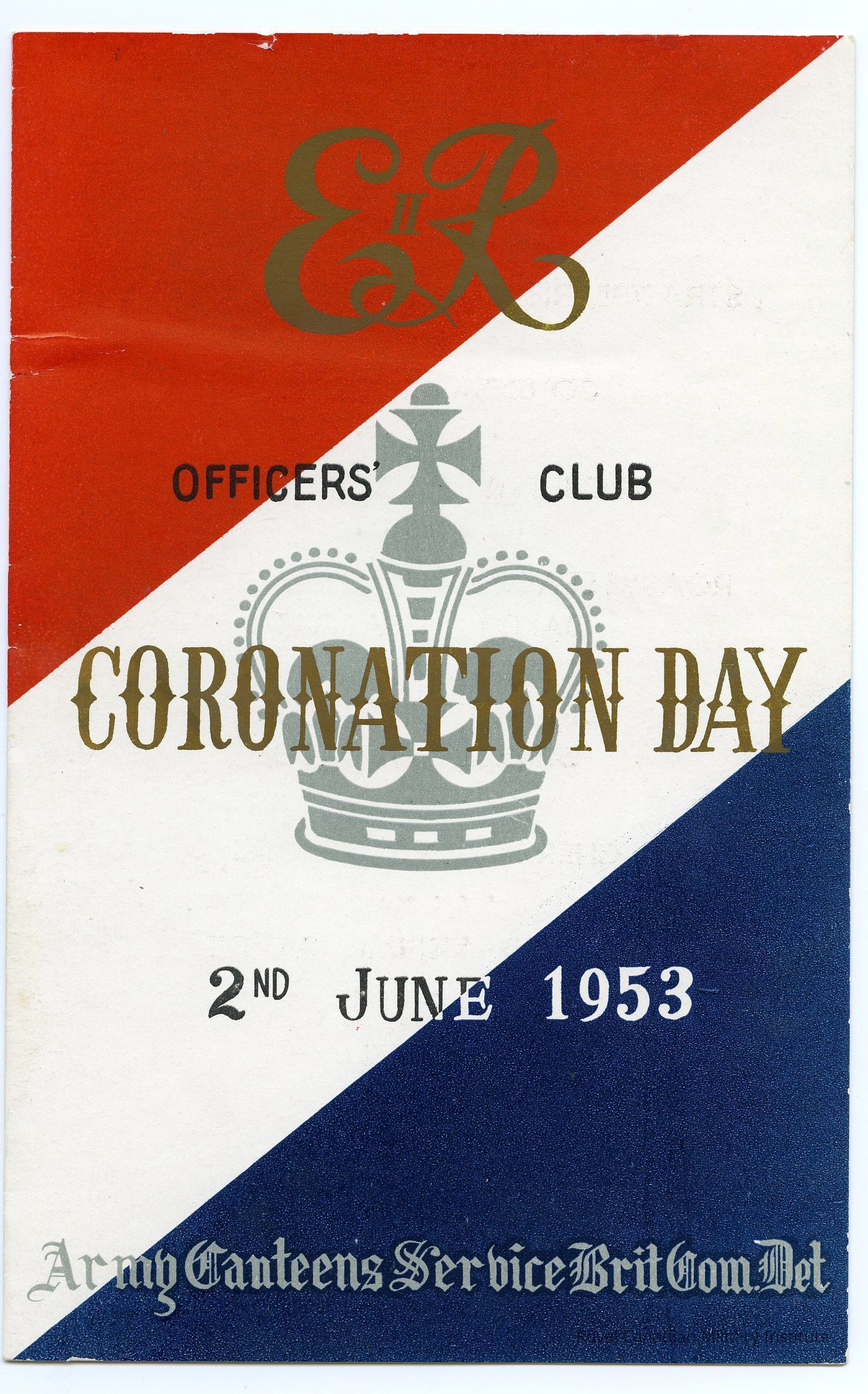 1953 British Commission Detachment Officers' Club "Coronation Day" pamphlet.Entry/Object ID