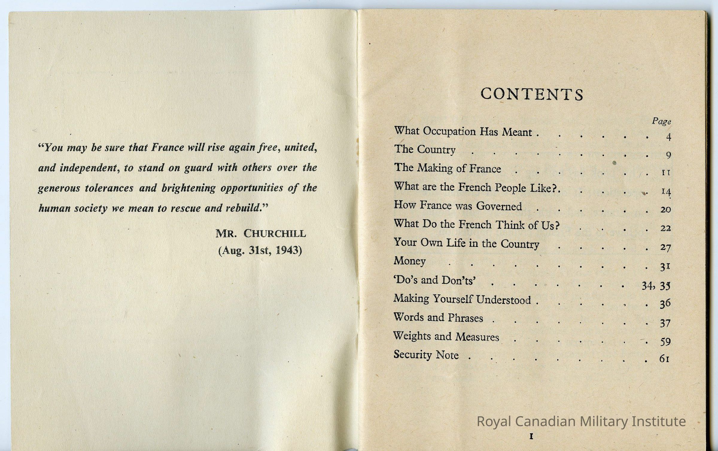 1944 Canadian Army "France" Pamphlet.Entry/Object ID