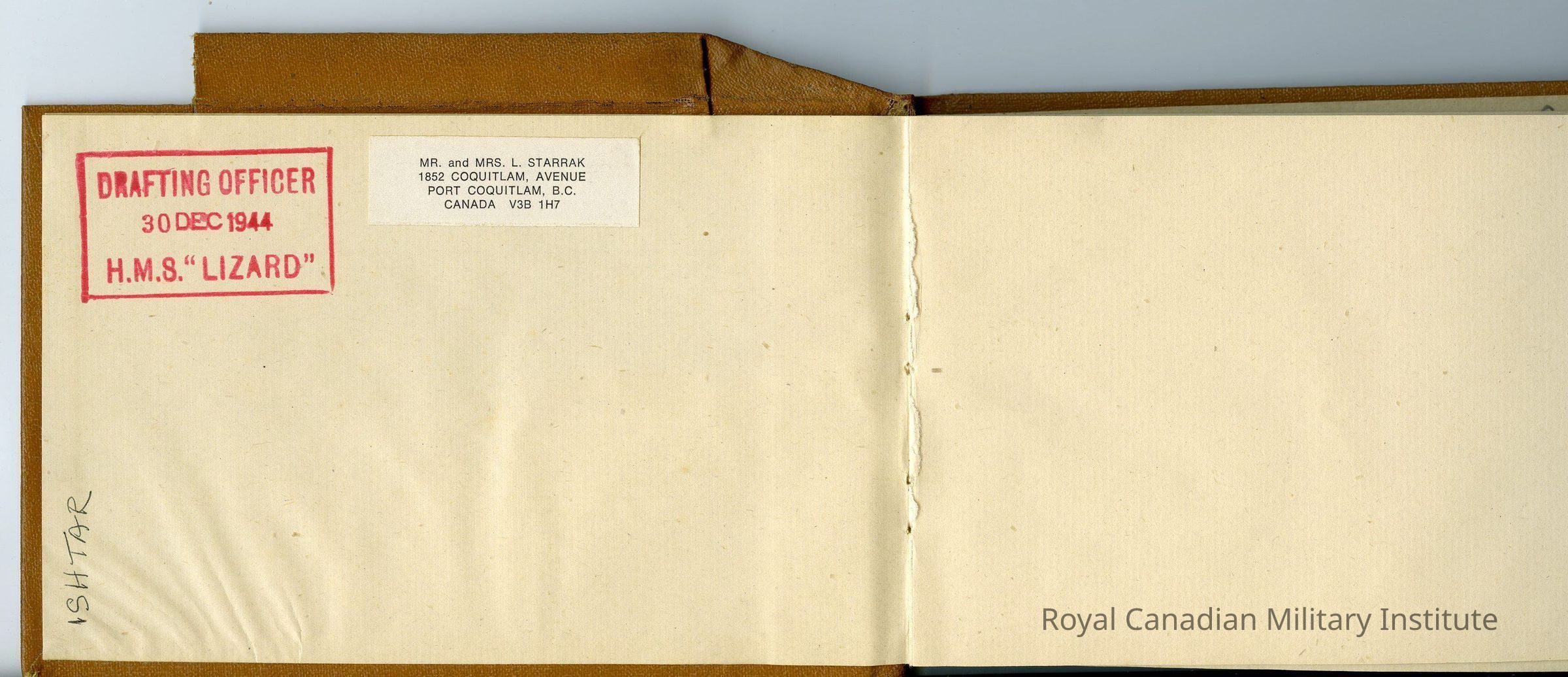 Inside the front cover, stamped in red: "Drafting Officer / 30 Dec 1944 / H.M.S. "Lizard" "