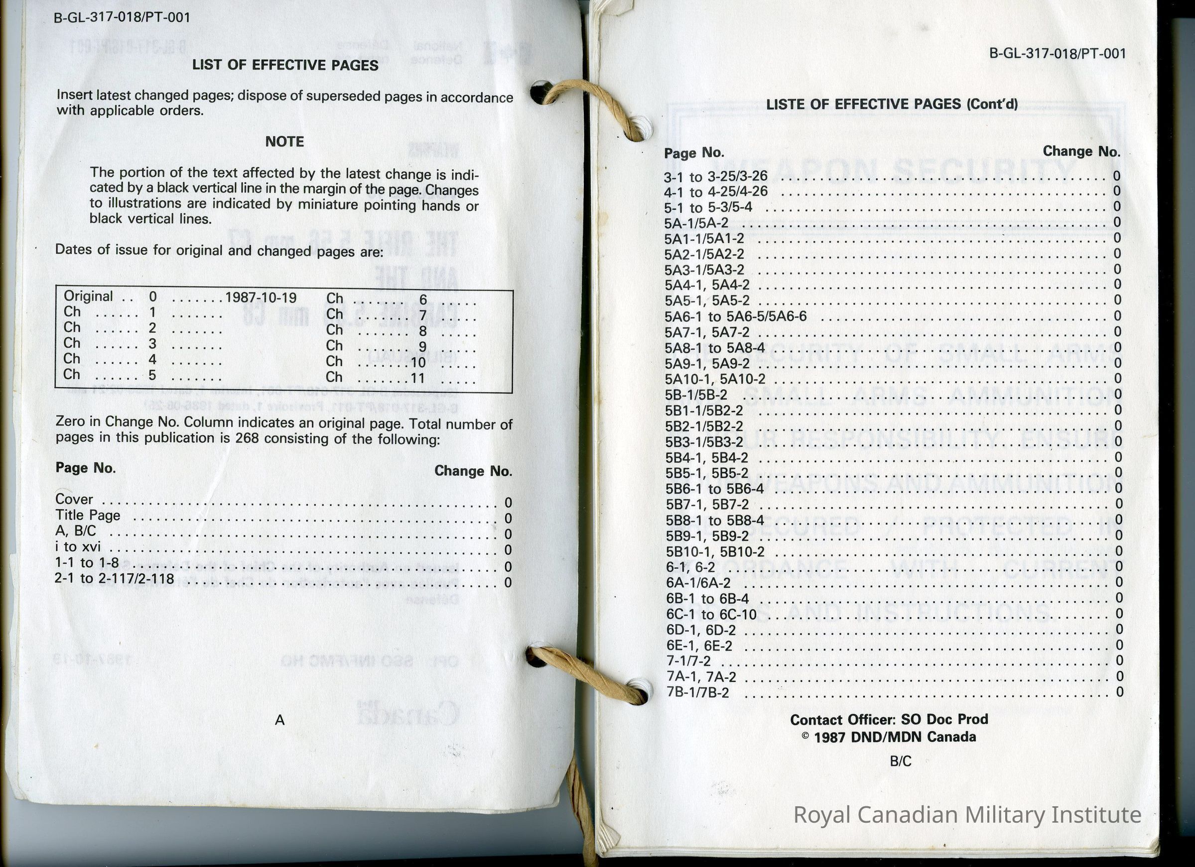 1987 Canadian Forces C-7 Rifle/C-8 Carbine Pamphlet. Rectangular, white paper, soft cover (no cover, tied with string. Title page Stamped "National Defence B-GL-317-018/PT-001 Weapons Volume 18 The Rifle 5.56 mm C7 and the Carbine 5.56 mm C8" Contains Technical Data, Introduction, Stripping/Assembling/Cleaning, Ammunition Handling, Firing and Drills, Stoppages/Immediate Action, Battle Drill/Firing, Bayonet Fighting, Instructors' Information, Range Practices, Tests/Standards, Destruction and References. 268 pagesDimensions