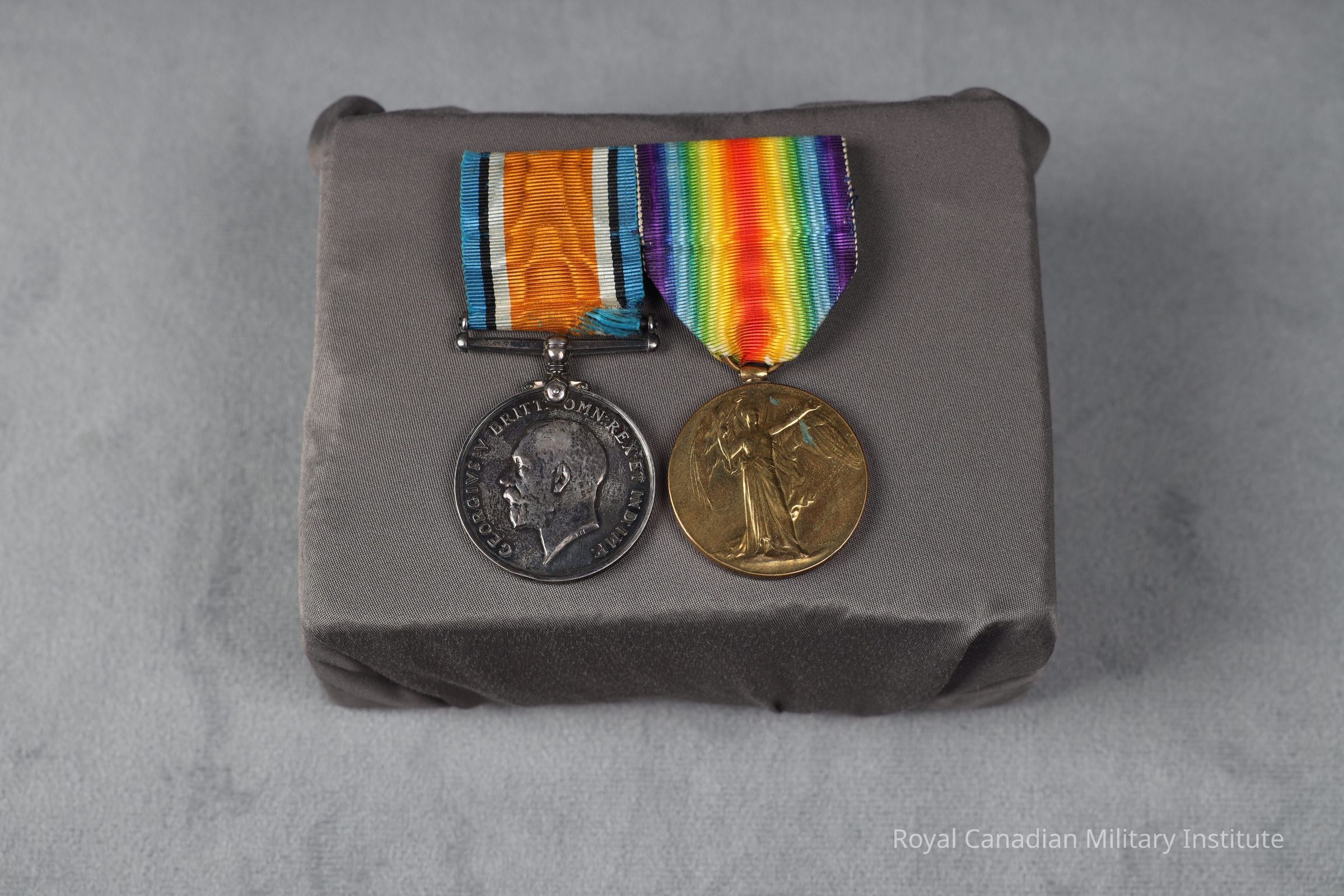 The British War Medal was awarded to all members of the Canadian military who served in any theatre of war between August 5, 1914, and November 11, 1918. Those who served in the Overseas Military Forces of Canada (OMFC) in the United Kingdom and did not participate in a theatre of war were not given the medal.