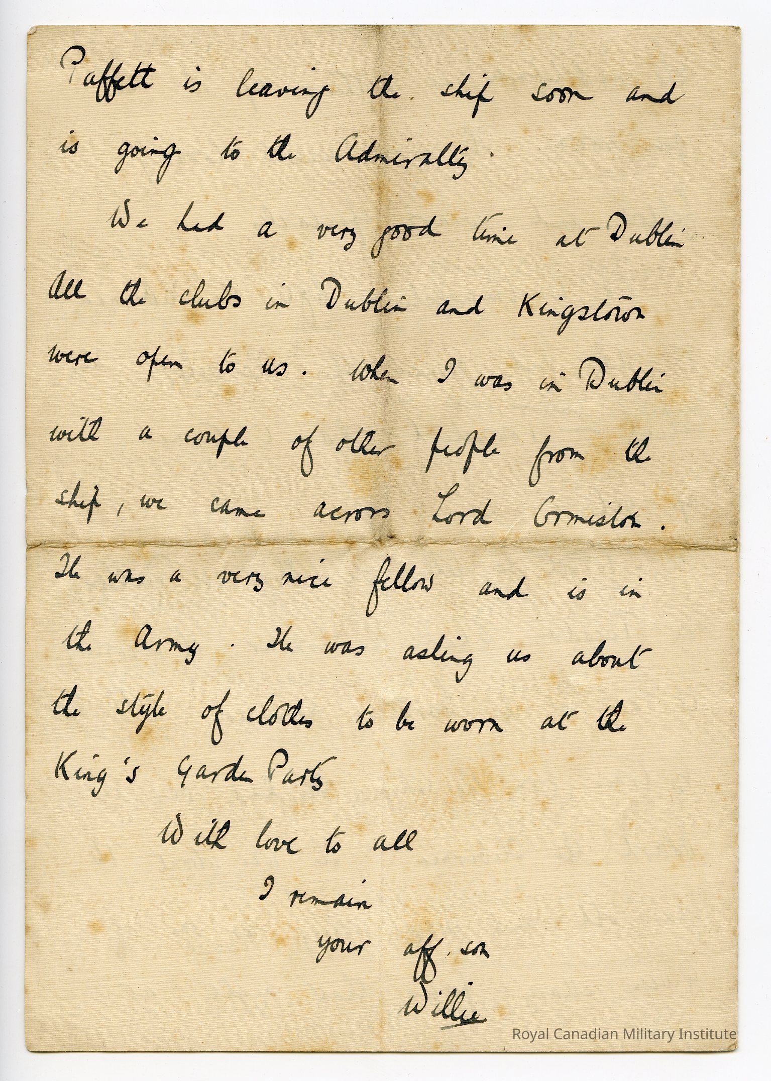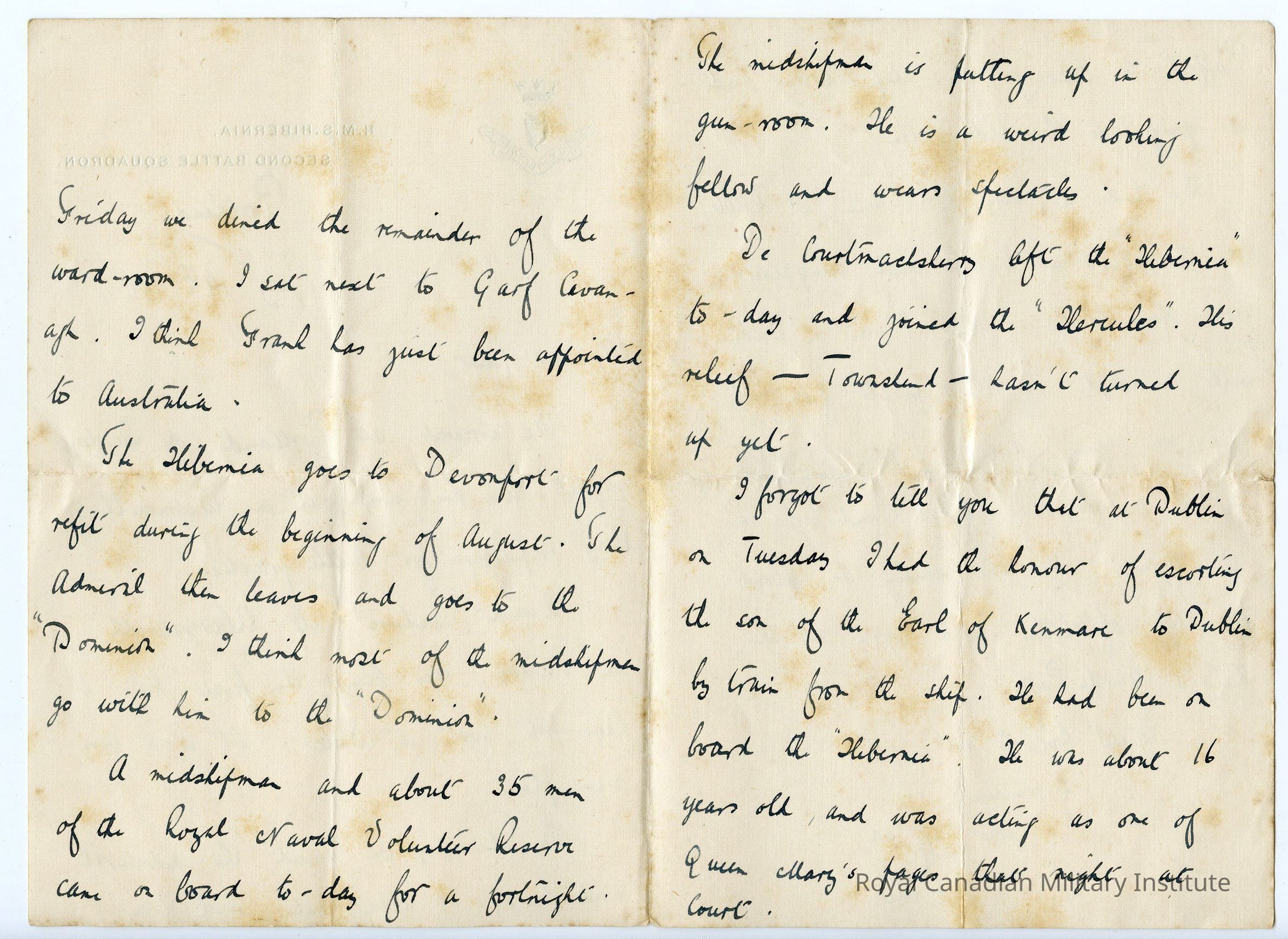 Letter “William Wales Edward HMS Hibernia Second Battle Squadron, Torquay, 19/07/1911”