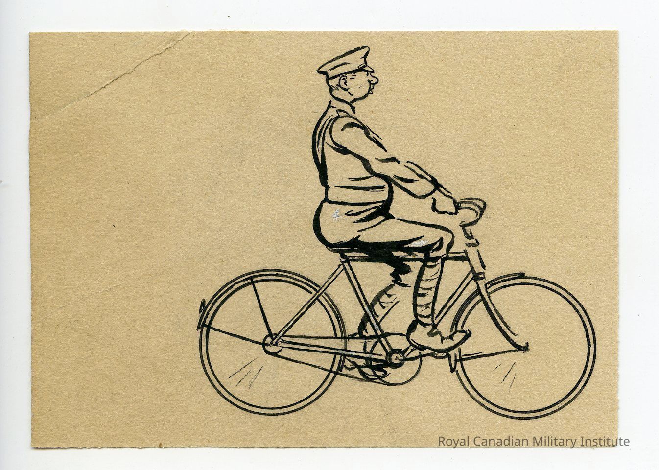Winslow Mortimer pen/ink cartoon entitled "Private Riding Bicycle."Entry/Object ID