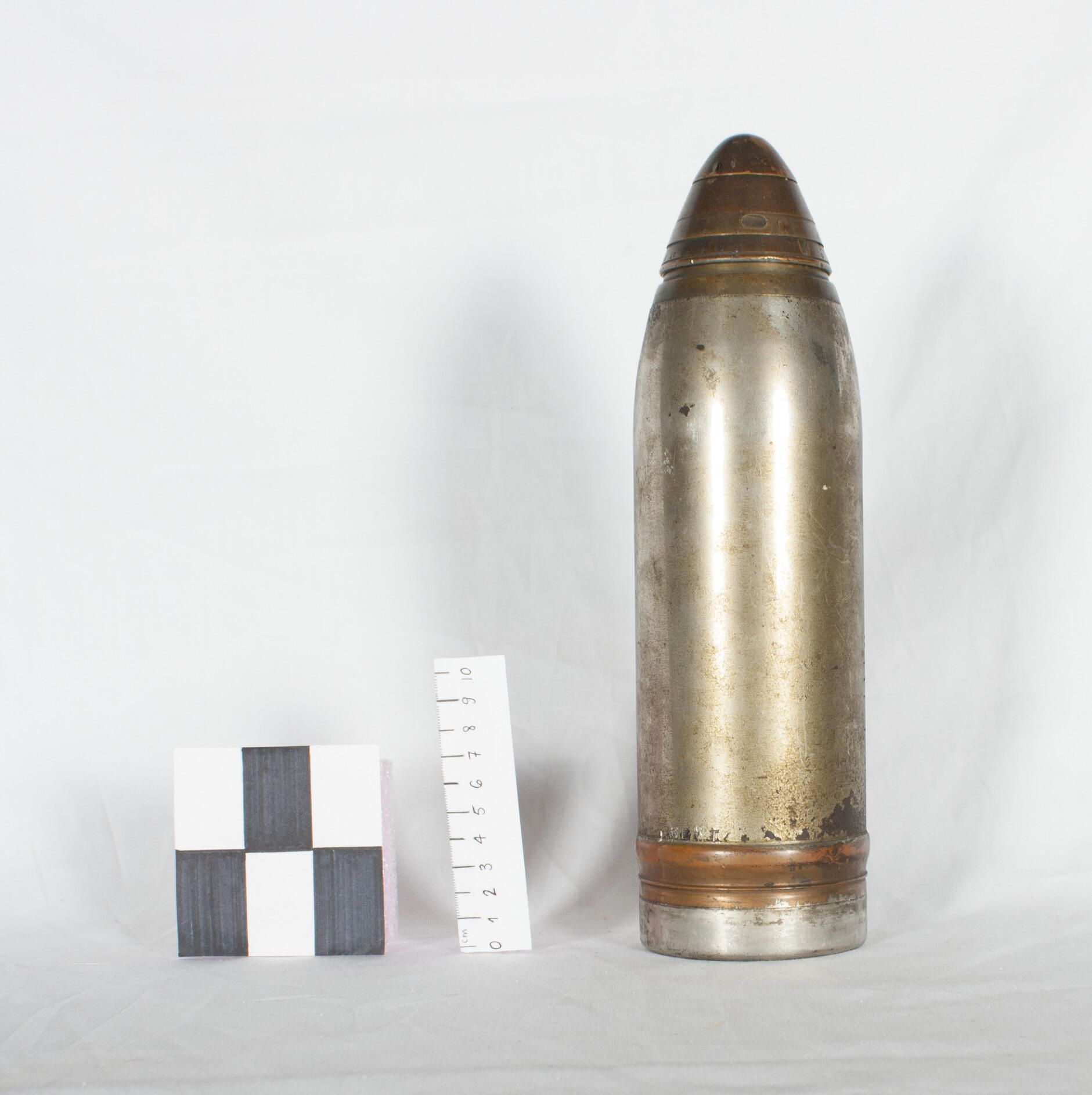 The Ordnance QF 18-pounder, or simply 18-pounder gun, was the standard British Empire field gun of the First World War era. It had a gun crew of six men. It formed the backbone of the British and Canadian Artillery during the war, and was produced in large numbers, over 10, 000 being built. The shell measured 84 x 295 mm. In the hands of a well trained crew under exceptional conditions the gun could fire at the maximum rate of 20 rounds per minute (rpm) but more normally at a sustained rate of 4 rpm.