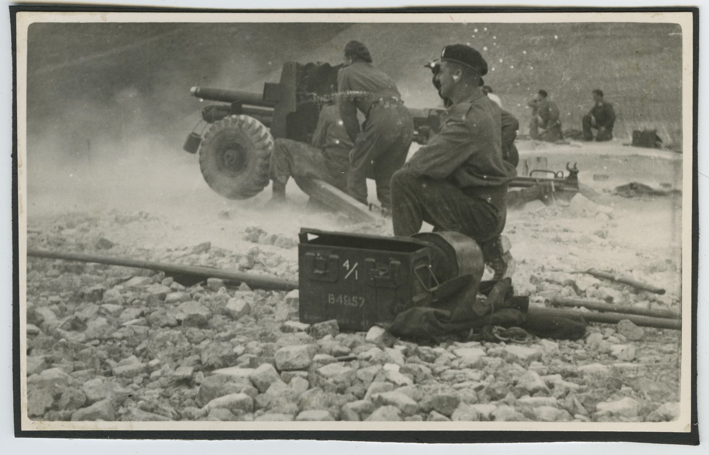 In this photo, the troops are learning to efficiently fire the anti-tank gun with live ammunition at the Beachy Head firing range.Photograph Details