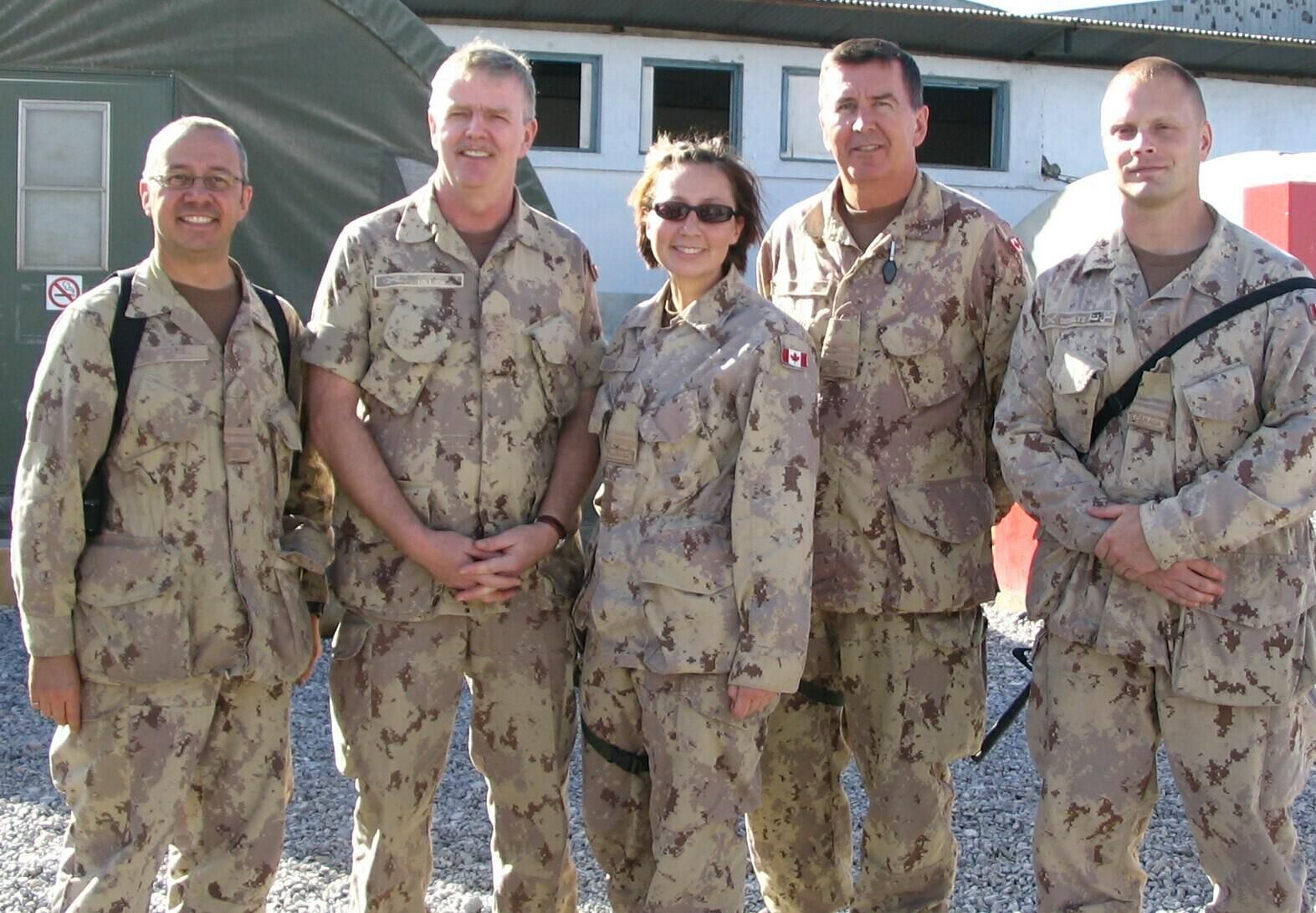 Captain Tony Petrilli in Afghanistan with Chief of the Defence Staff General Rick Hillier and fellow soldiers.Photograph Details