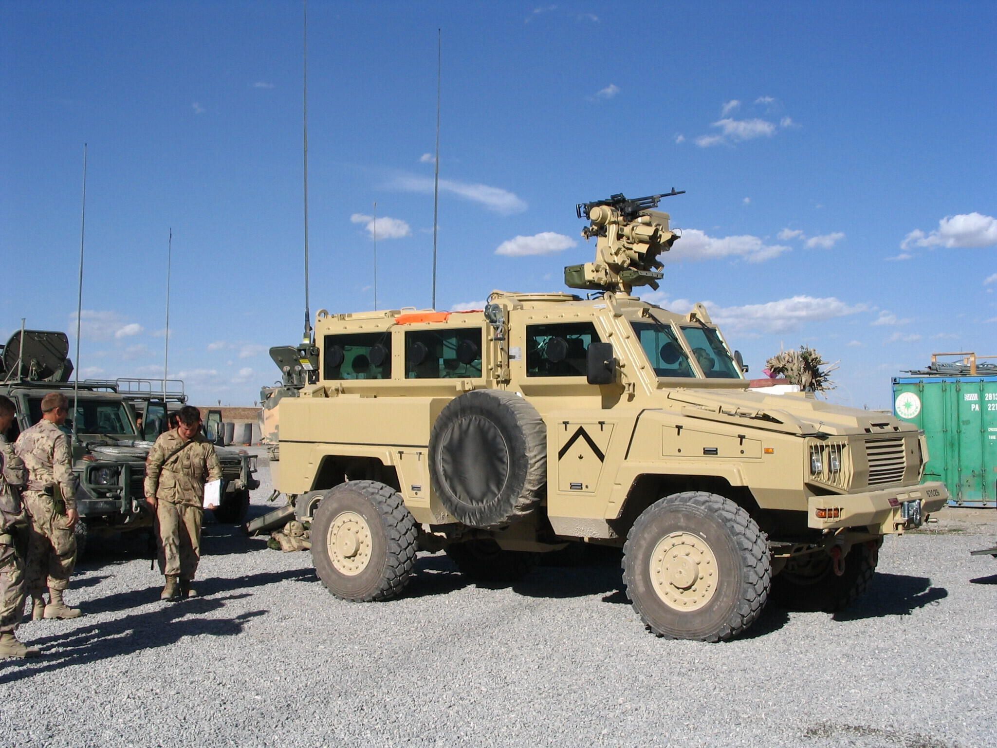The Vehicle has a V-shaped all-steel welded armour monocoque hull and high suspension, providing excellent small-arms and mine blast protection. It can accommodate a crew of 8 or 10 including the driver. Fixed to its roof is a remote weapon station operated from the inside.Photograph Details