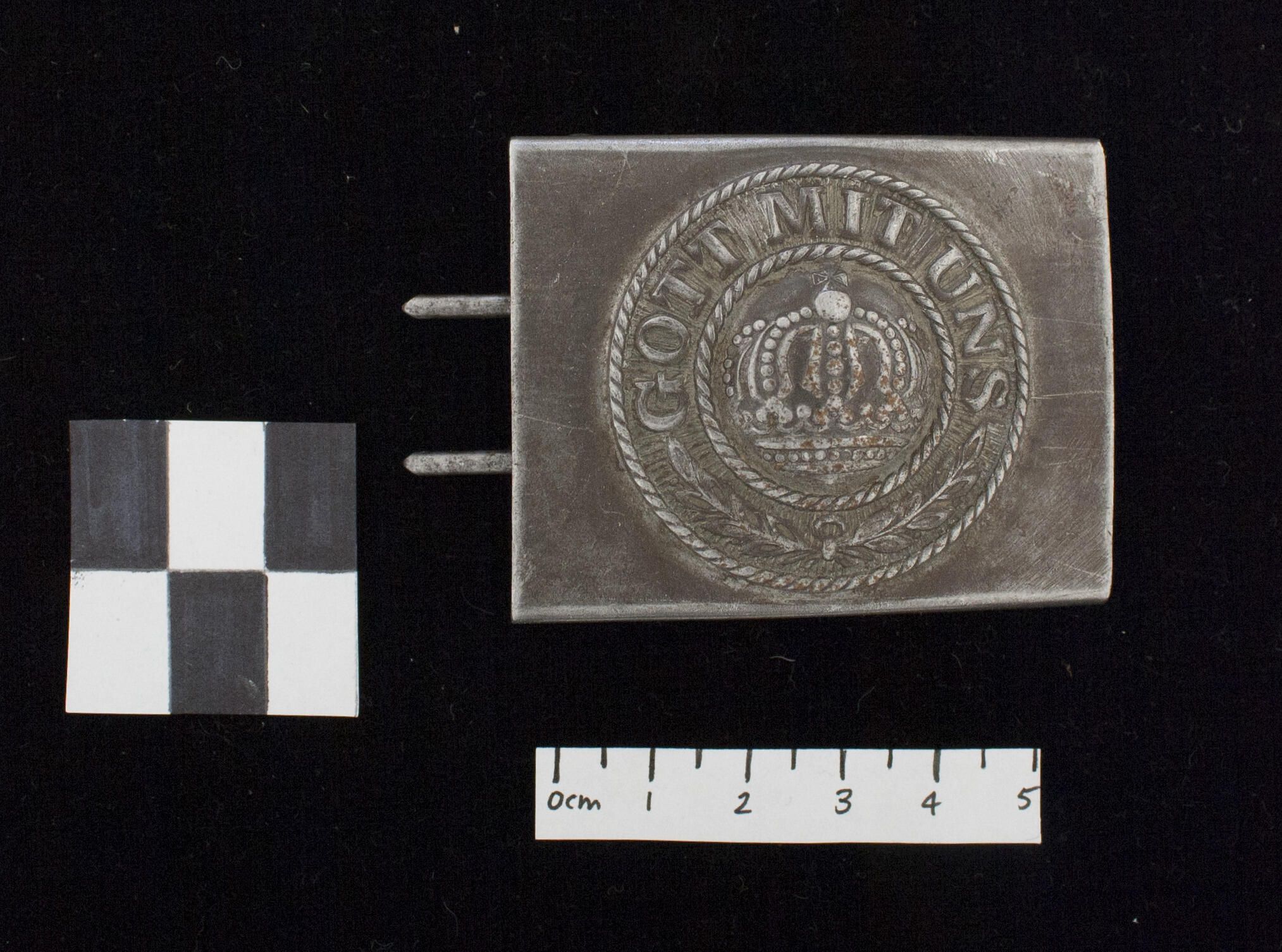 Prussian M1915 Metal belt buckle with the German inscription "Gott mit uns" which translates to "God with us". This was worn by Prussian enlisted men and NCO's.Lexicon