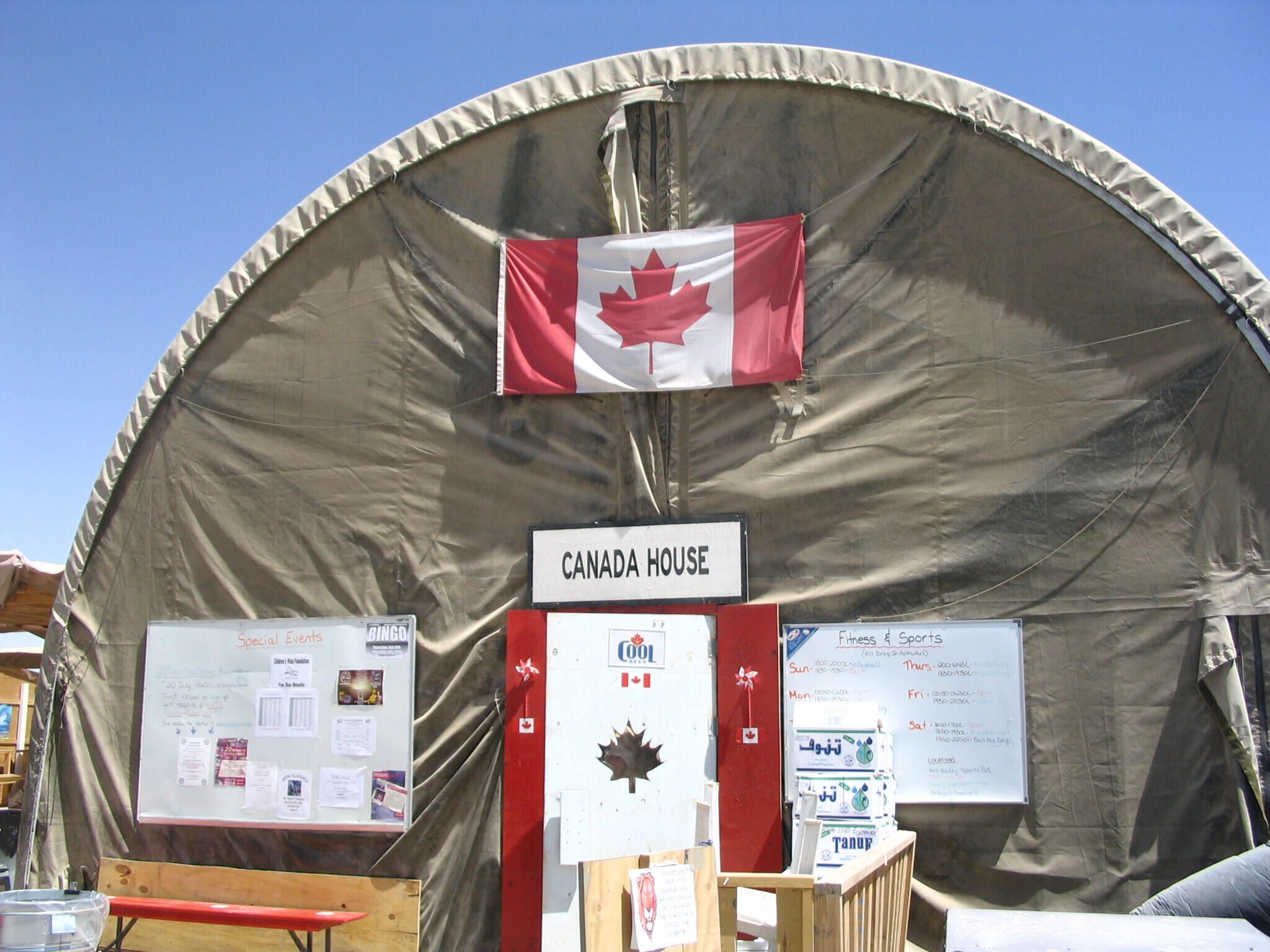 A Quonset, an Alaska military shelter, set up at Kandahar Airfield. This tent known as ''Canada House" would provide a home away from home to the Canadian soldiers based in Kandahar Airfield or on a visit to the base.