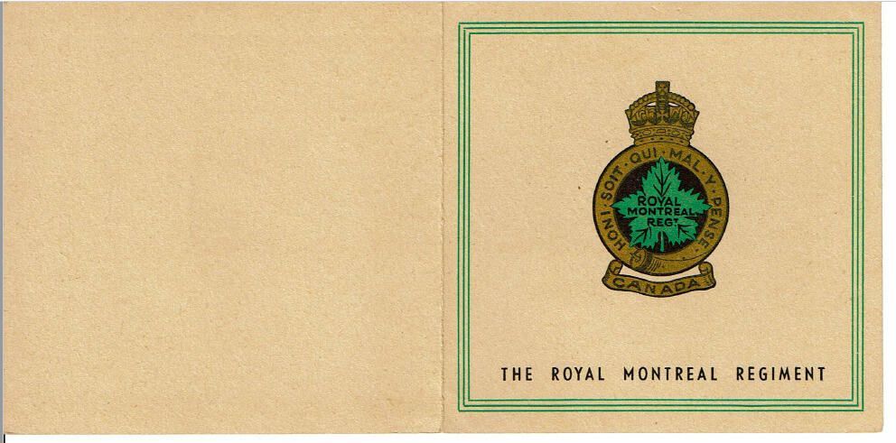 A colourized 1944 Christmas card with the badge of The Royal Montreal Regiment. In inside is a generalized greeting accompanied by a manuscript dedication from Howard.Relationships