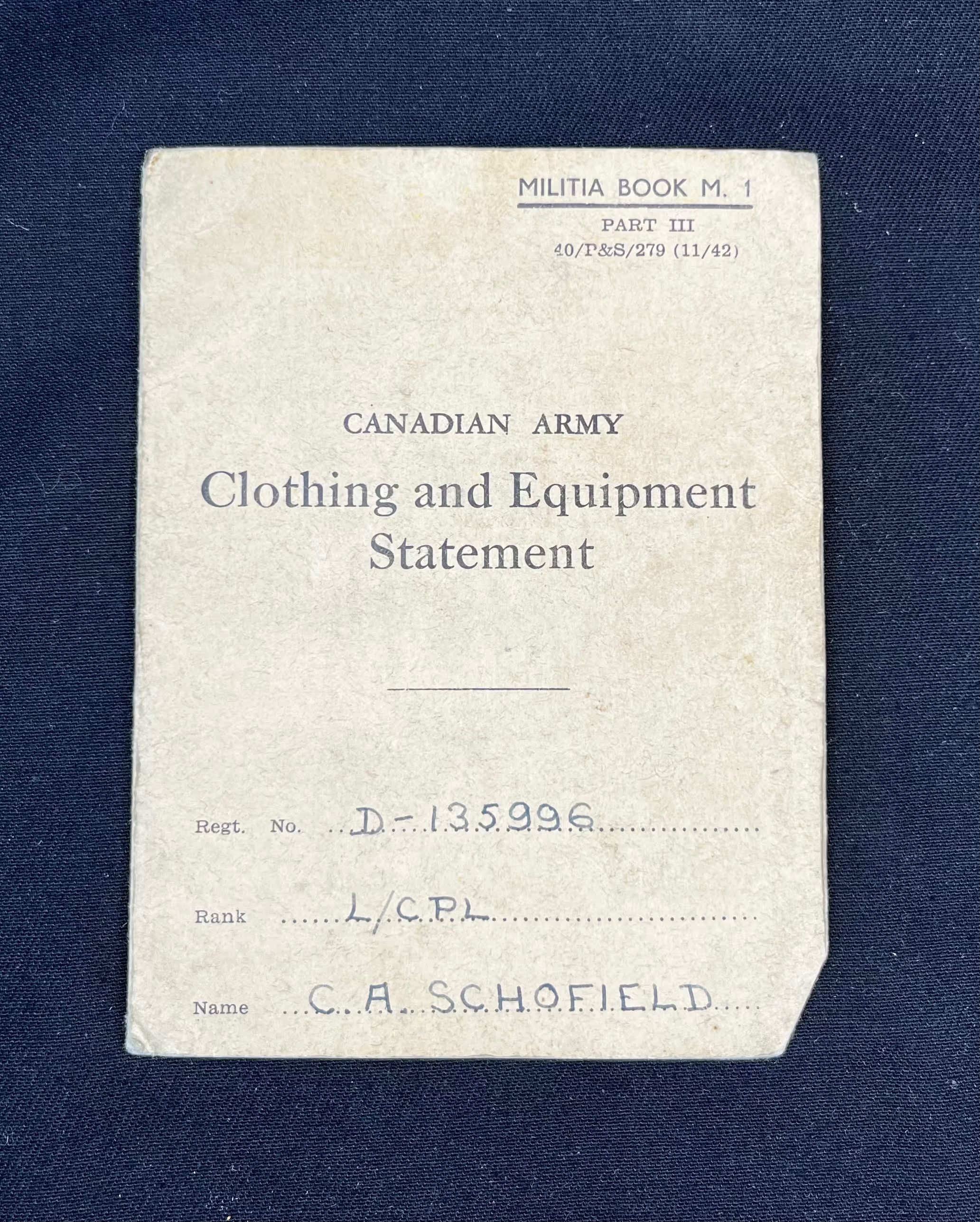 Canadian Army Clothing and Equipment StatementDescription