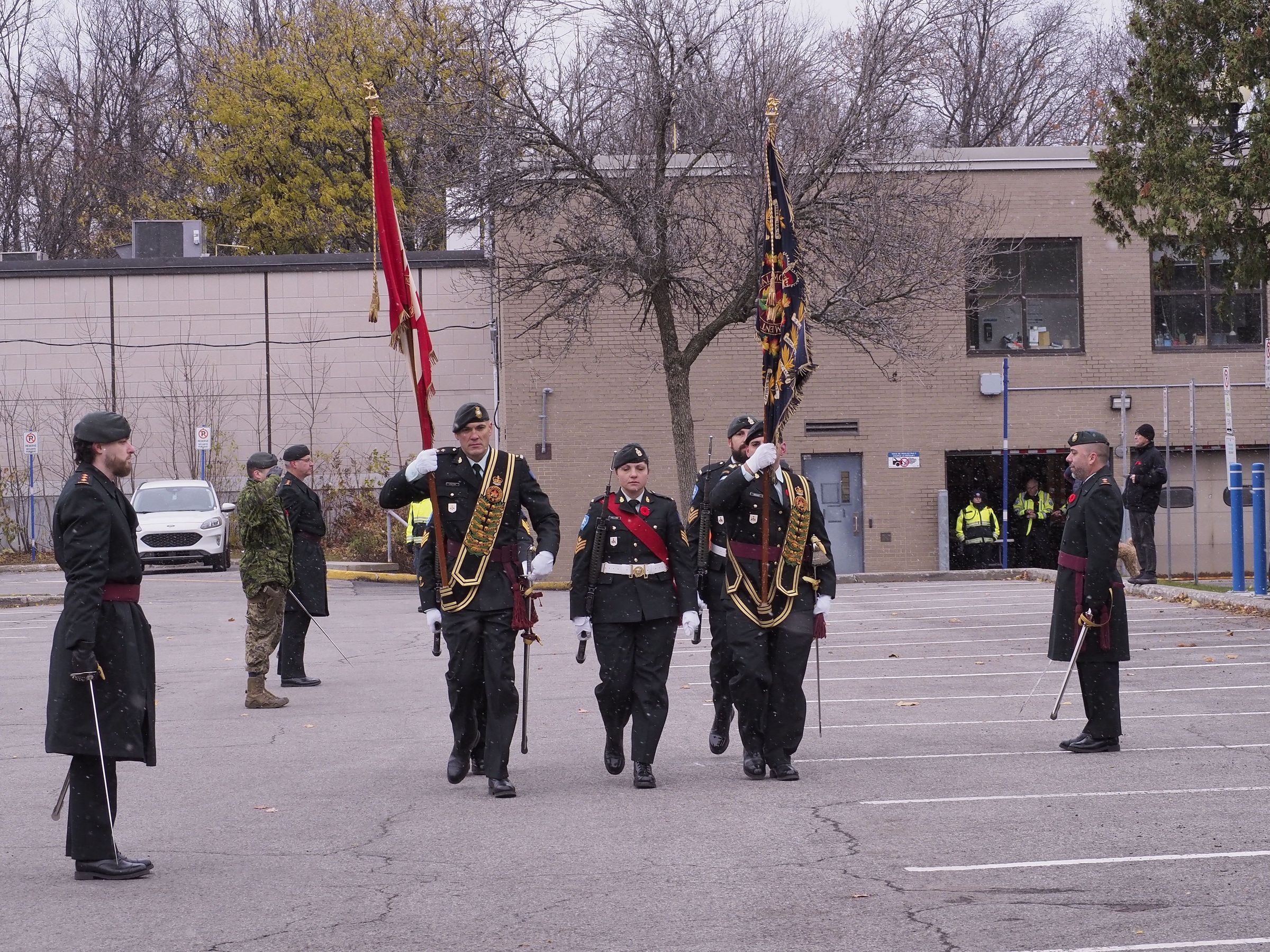 RMR's Remembrance Day Parade in Pointe-Claire. The colour party marches past the C.O.