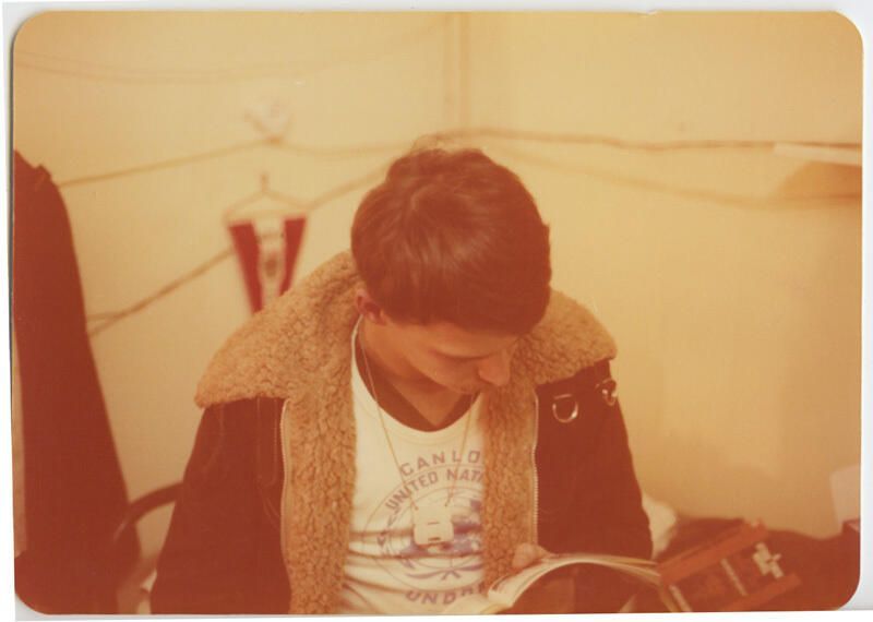 Corporal William J. Thibault is sitting with a book in his hand. He is probably in his personal living quarters, the place where is slept while serving in the Golan Heights with United Nations Disengagement Observer Force.Photograph Details