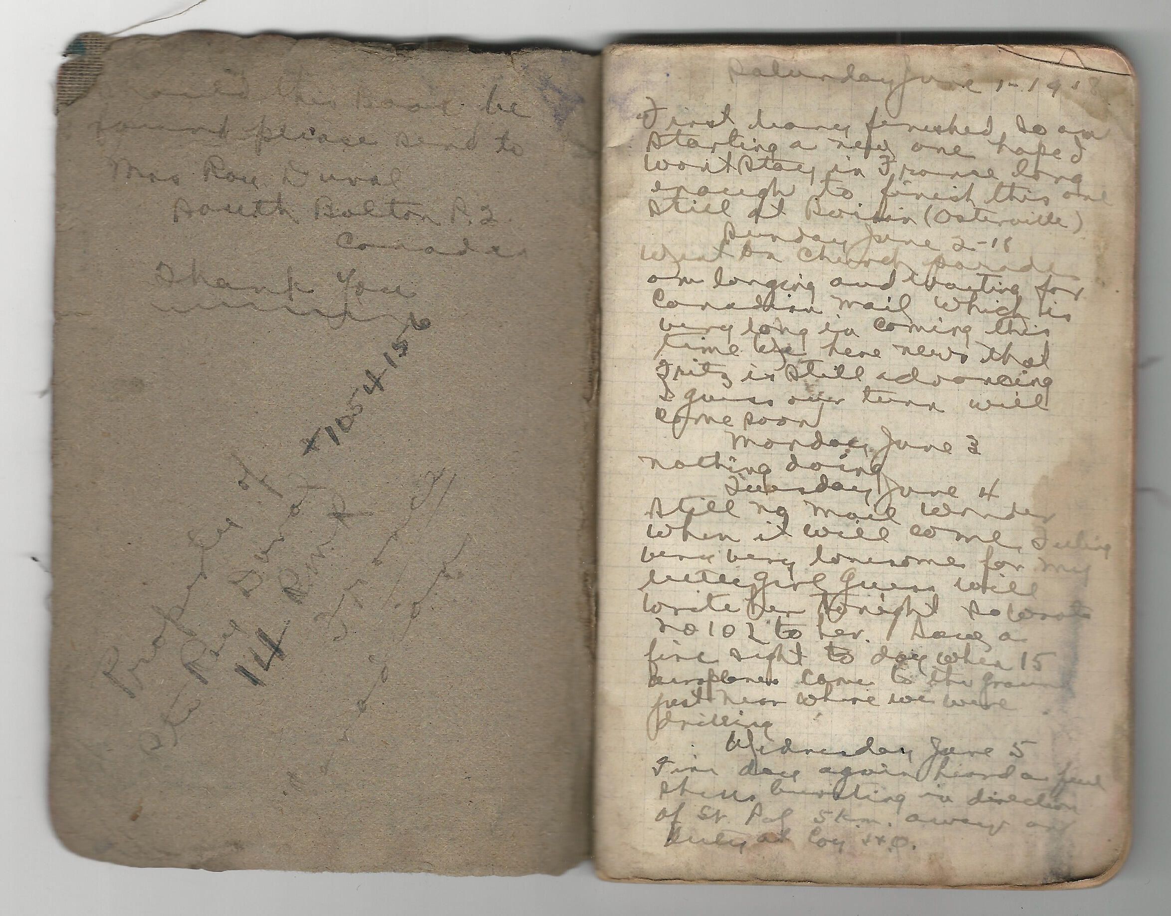 Pte Raymond Duval's diary (Vol 2). This volume which records Private Duval's daily experiences begins with his entry for Saturday, June 1, 1918.Relationships