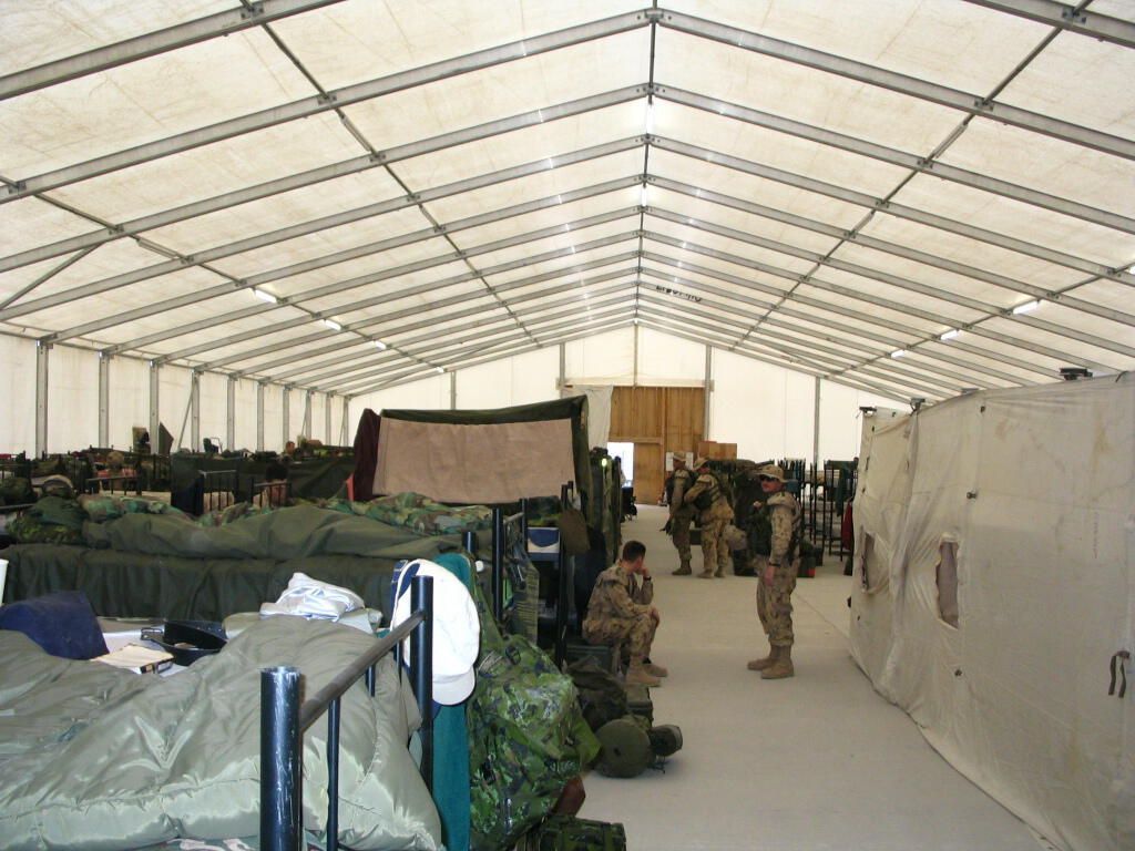The living and sleeping accommodations for military personnel at the Kandahar Airfield. They would sleep in an airconditioned rigid structure placed on a concrete pad.