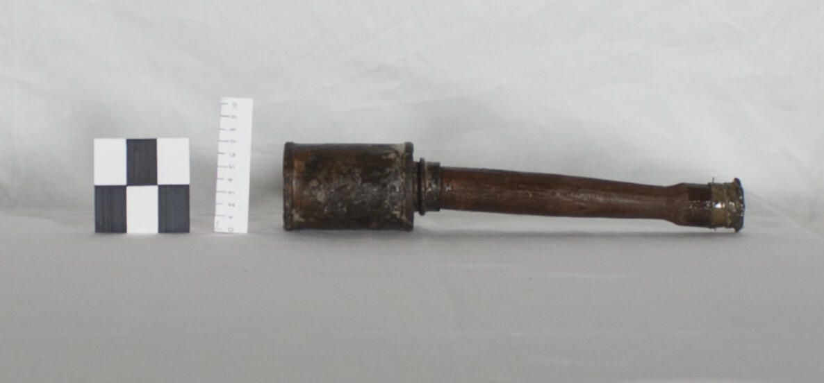 "By 1915 the Gwermans introduced their first regulation stick grenades, with the now familiar metal can of explosives attached to a stick handle, equipped with a delay fuze activated by a pull cord lanyard." (Source: http://inert-ord.net/gerimp/sticks/index.html)