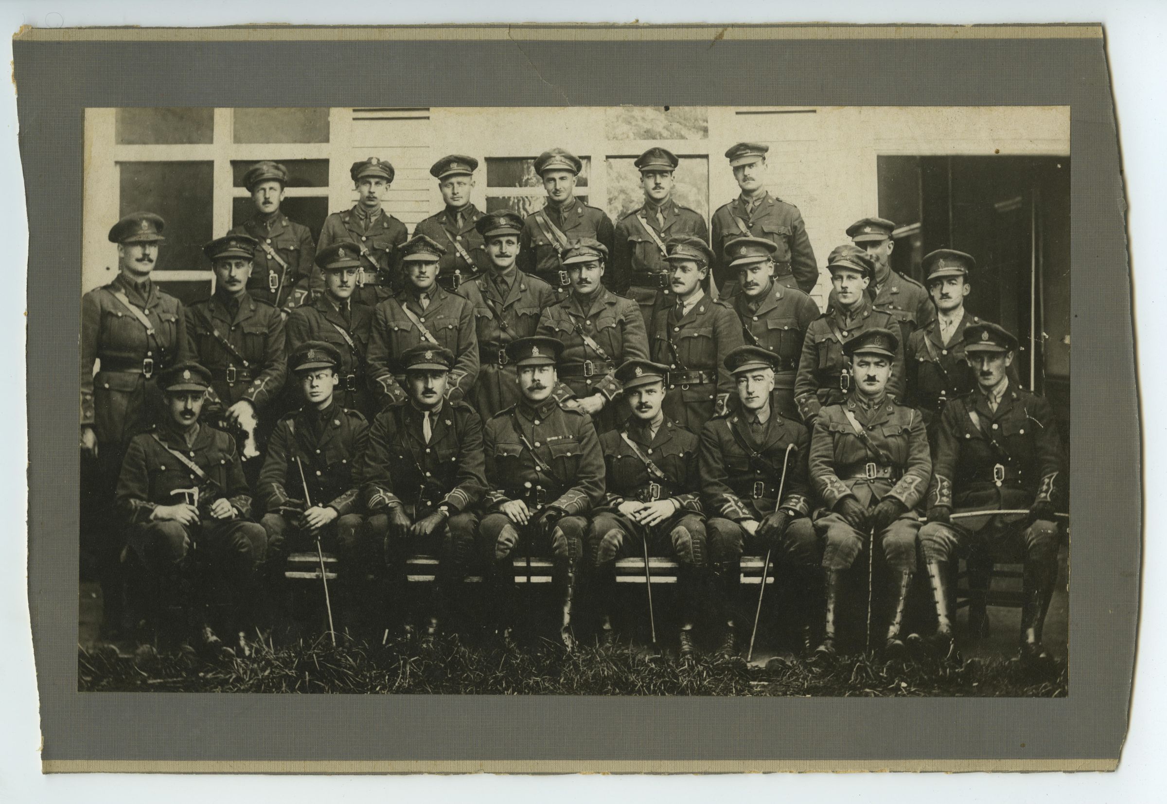 Twenty-Five Officers of the 14th Battalion of the Canadian Expeditionary Force posing for a group portrait.