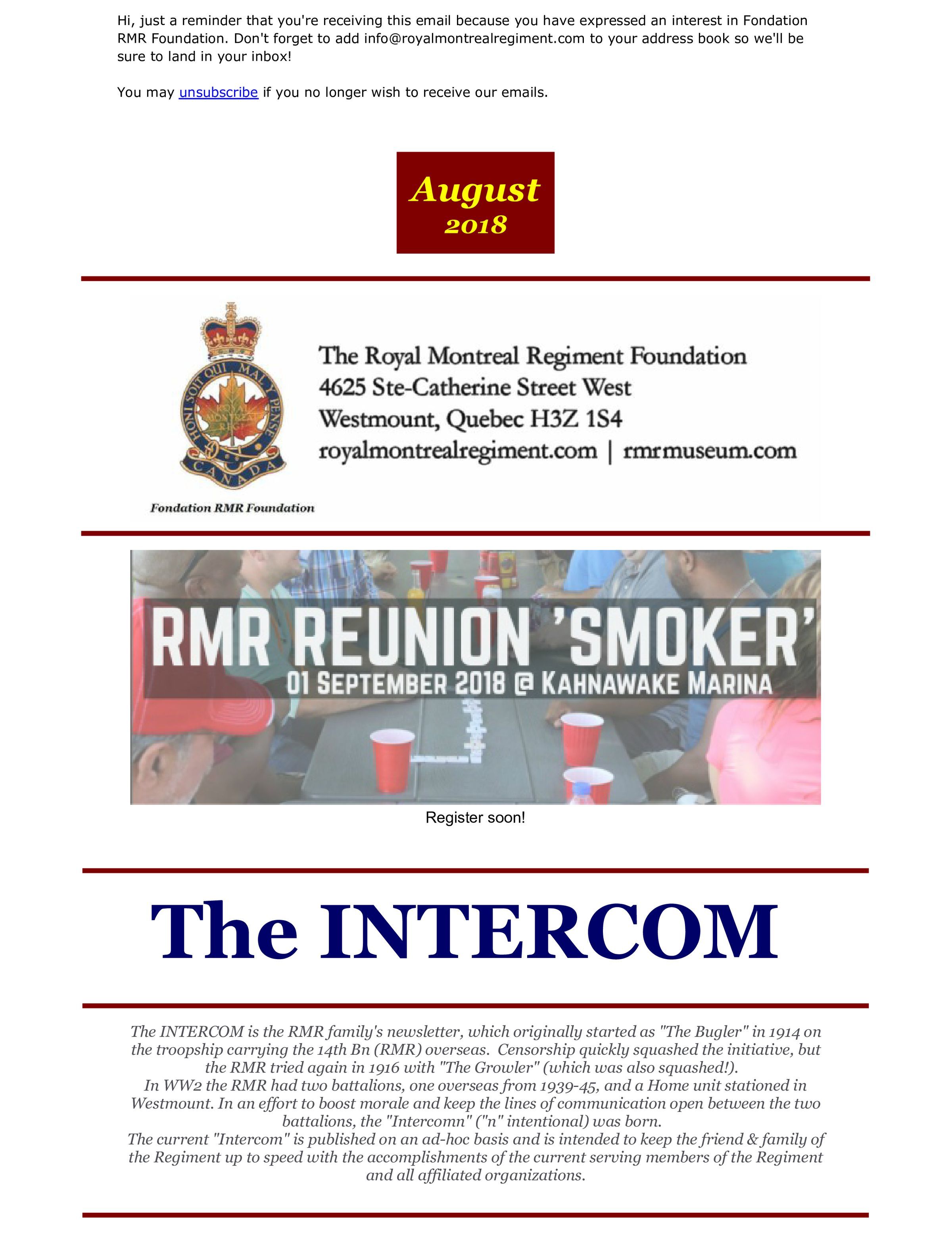 Robinson, Colin Angus, Shone, John Lindegaard, Molson, Andrew, Leroux, Stephan, Carson, Johnny, O'Driscoll, Brigitte, Smith, Christina, Slessor, J. Hamilton, The Royal Montreal Regiment Association, Branch 14, Royal Canadian Legion, Canadian War Museum