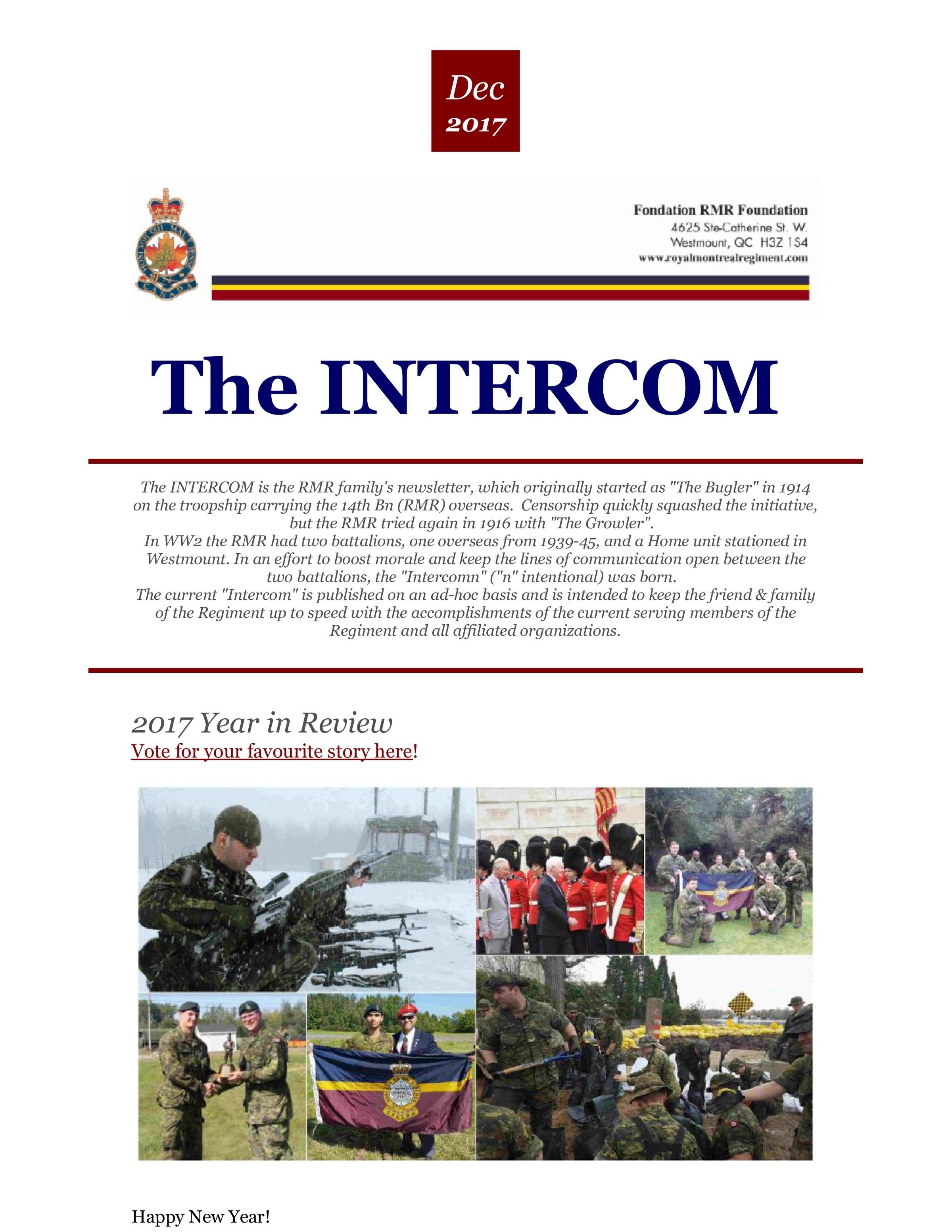 Lawson, Rhett C. P., Smith, Christina, Rambarransingh, Zachary, Brooker, Sybil, Robinson, Colin Angus, 1 West Montreal Squadron, Morneau, Gabriel, Ruscito, David, Denis, Jean-Francois, Slessor, J. Hamilton, McNair, Brent, Talarico, Pino, Lambourne, William James, Baburin, Roman, Lachance, Scott P., Guerin, Suzanne C., Nino, Juan D., Leslie, Thomas, Pellow, Tess, Iaconetti, Justin, Javornik, George J., The Royal Montreal Regiment Association, Branch 14, Royal Canadian Legion, 2806 Pointe-Claire (RMR), RCACC, Paulin, Patrick, O'Driscoll, Brigitte, 2862 Royal Montreal Regiment (Westmount), RCACC, Rambarransingh, Nikita, Shone, John Lindegaard, Lamb, Christopher, Duval, Raymond, Symon, Clayton, RMR Museum, Molson, Andrew, Hart, David, Trent, Peter Francis, Randall-Coss, C. B., David, Joseph, Oidi, Flickinger