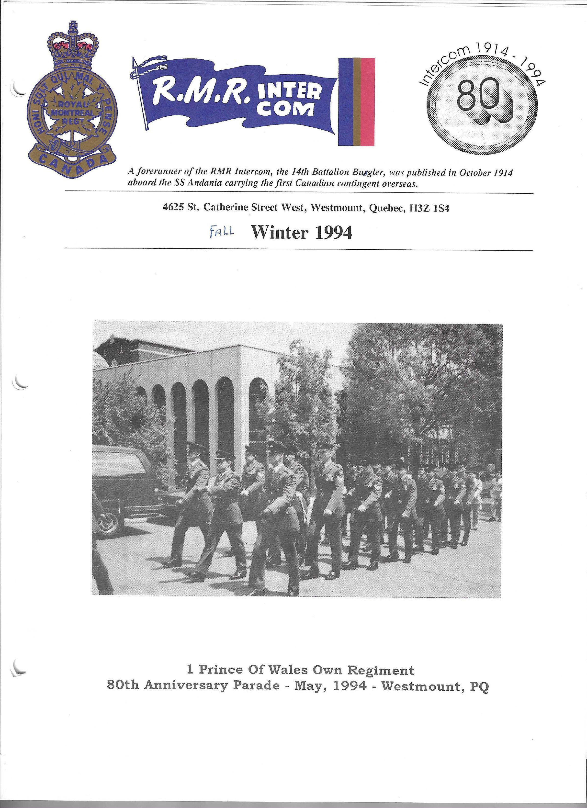 Stymest, Francis W., Maass, Gerhart, 1 Prince of Wales Own Regiment, Brassard, Roger, Turner, Paul Anthony, Moore, William G., Barre, Paul Herbert, Frezza, John, Turner, Paul Anthony, Brewer, George Bernard, Lambertucci, Nino, Finnie, Daria, Moody, K., Gzowski, Casimir Stanislaus, Trent, Peter Francis, The Royal Montreal Regiment Association, Branch 14, Royal Canadian Legion, Hodgson, Russell James Stephenson, 2806 Pointe-Claire (RMR), RCACC, Finnie, Keith, 2862 Royal Montreal Regiment (Westmount), RCACC, Loudon, Walter Allen, Glickman, Tobias M., Mehran, Reza John, Gwyn, Quintin Peter Thorsby Jermy, McConachie, John David, Randall, Thomas L., Angell, Joan, Taylor, John, Cavaluzzi, Ralph